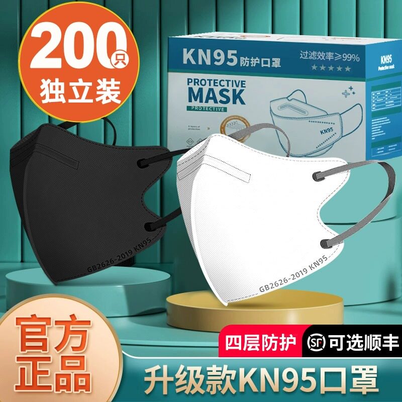 kn95口罩3d立体女高颜值秋冬季2024年新款透气防尘男潮款黑色正品