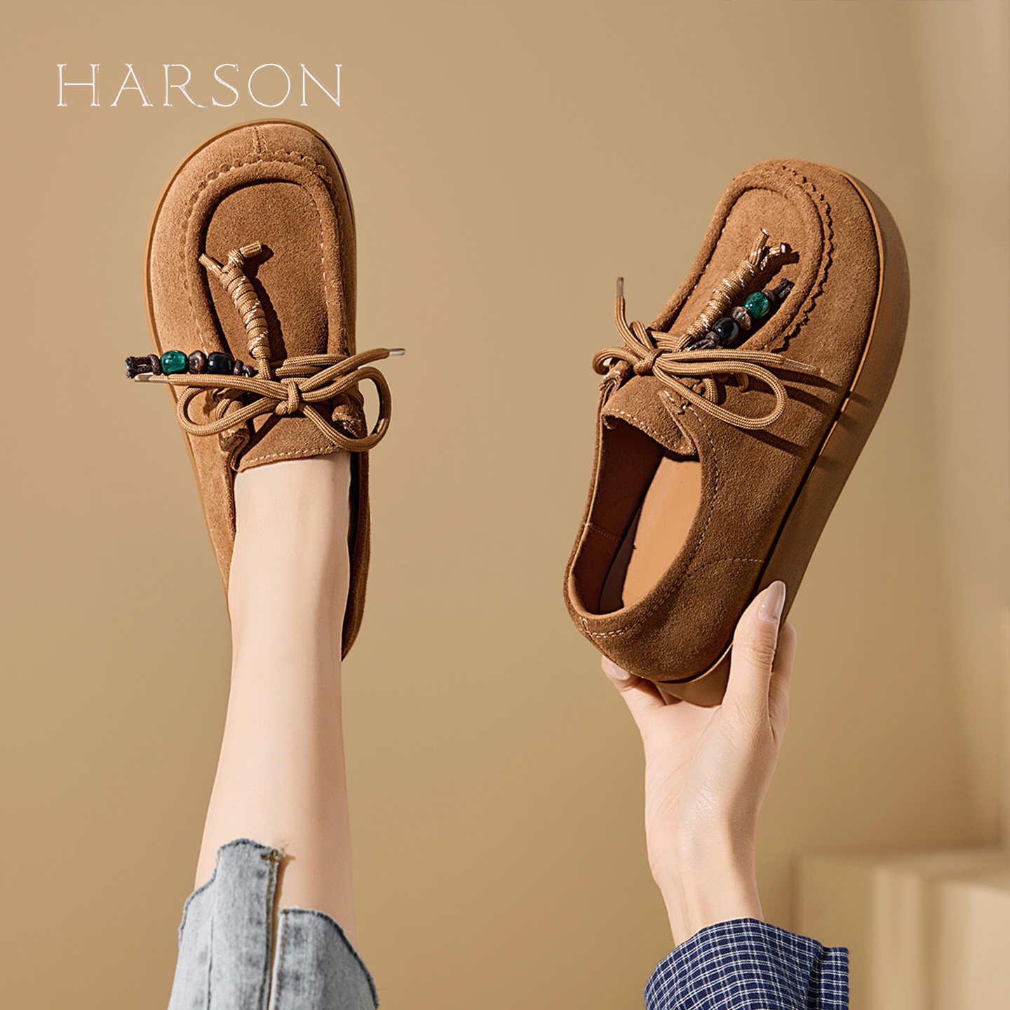 哈森复古勃肯鞋女2026新款春季舒适通勤鞋懒人休闲袋鼠鞋单鞋