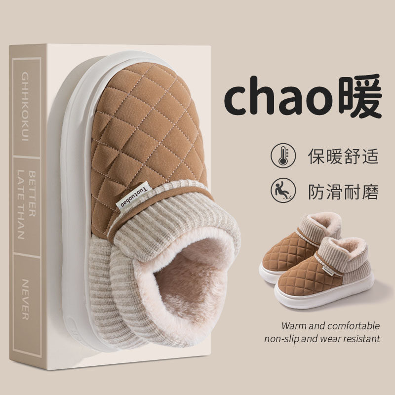 棉拖鞋男款男士棉鞋冬季包跟2025新款室内家居保暖厚底防滑毛加绒