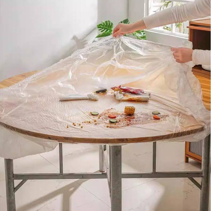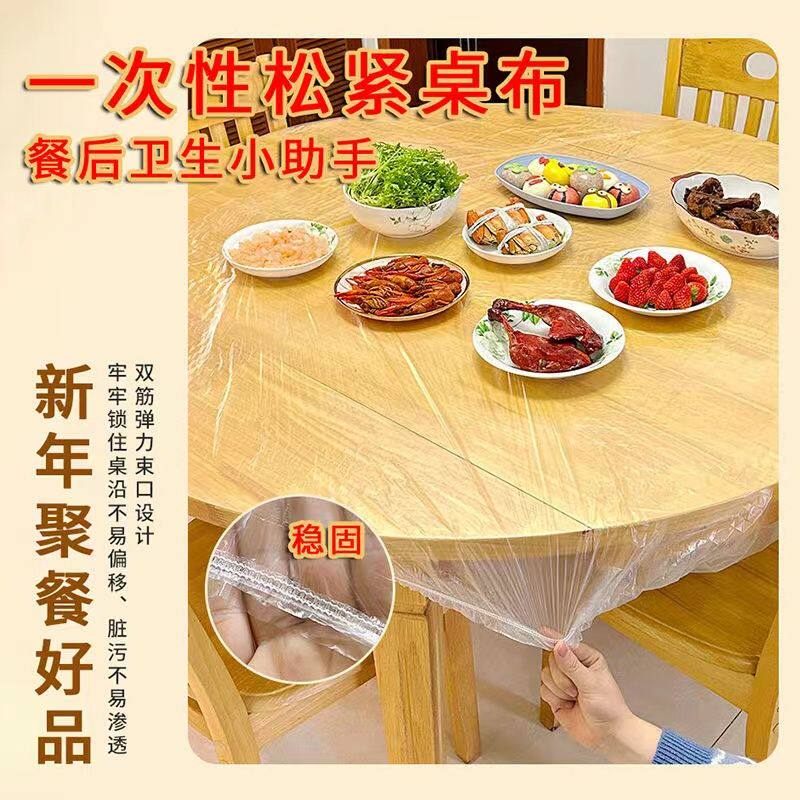 束口一次性桌布红色家用加厚松紧带台布免洗结婚透明酒席防水防油