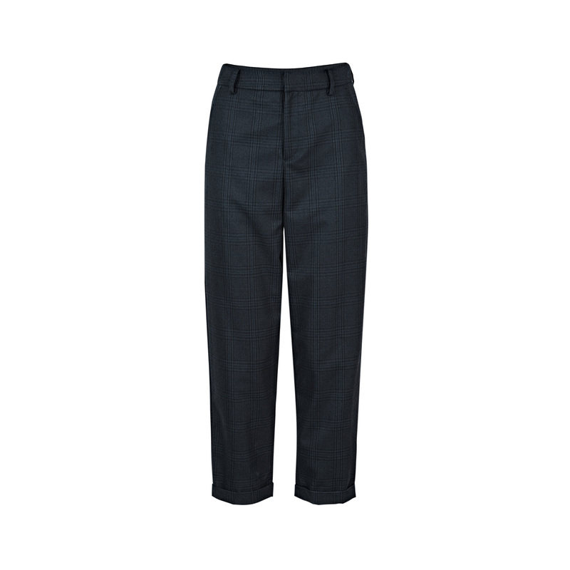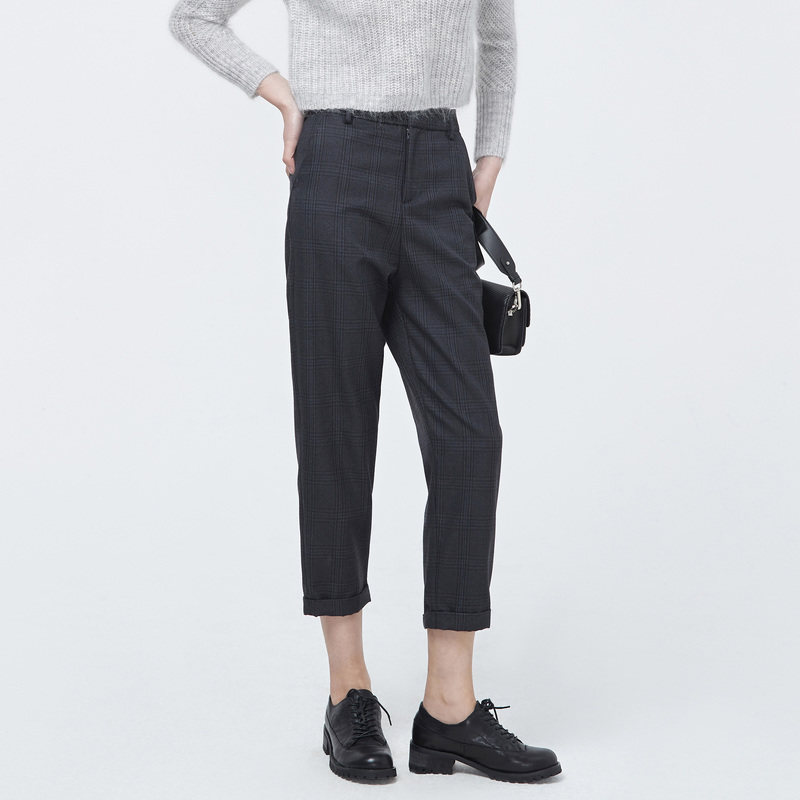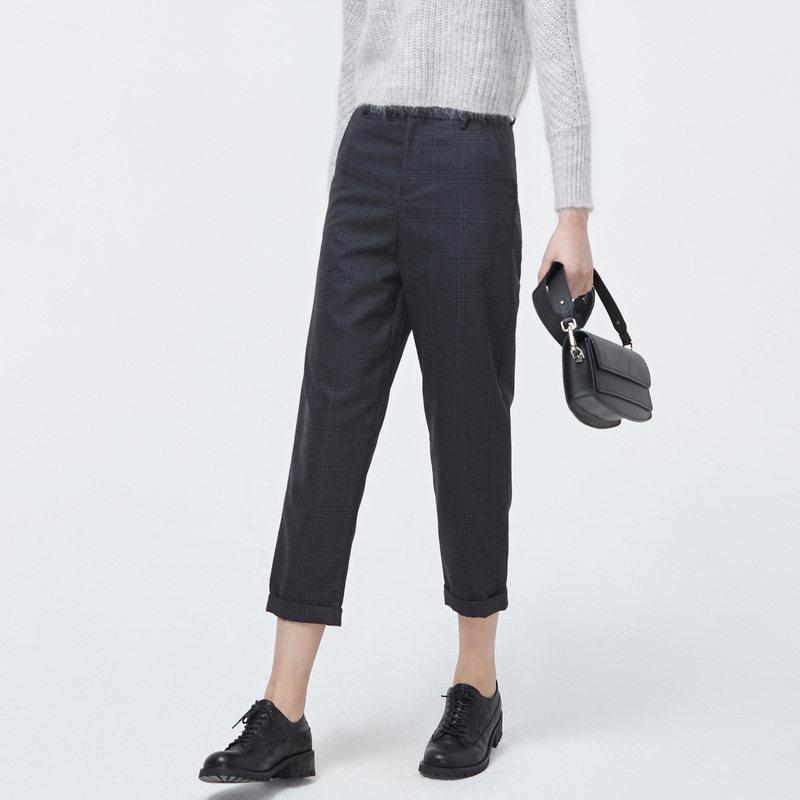 通勤风 西装九分裤 撞色格纹