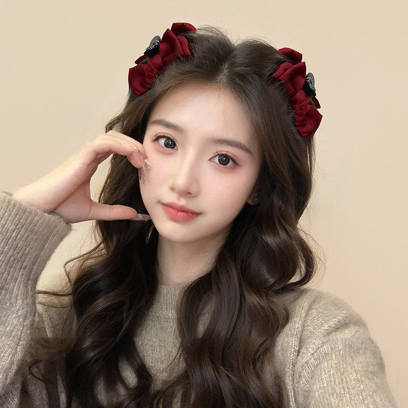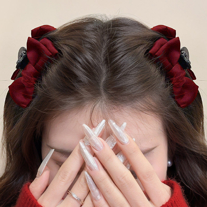 新年红色发饰公主头发夹女蝴蝶结小抓夹刘海侧边夹子儿童发卡头饰