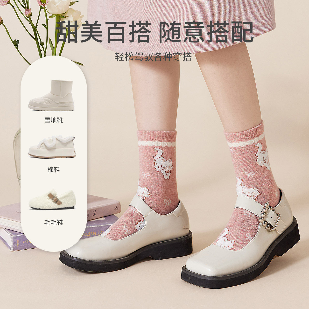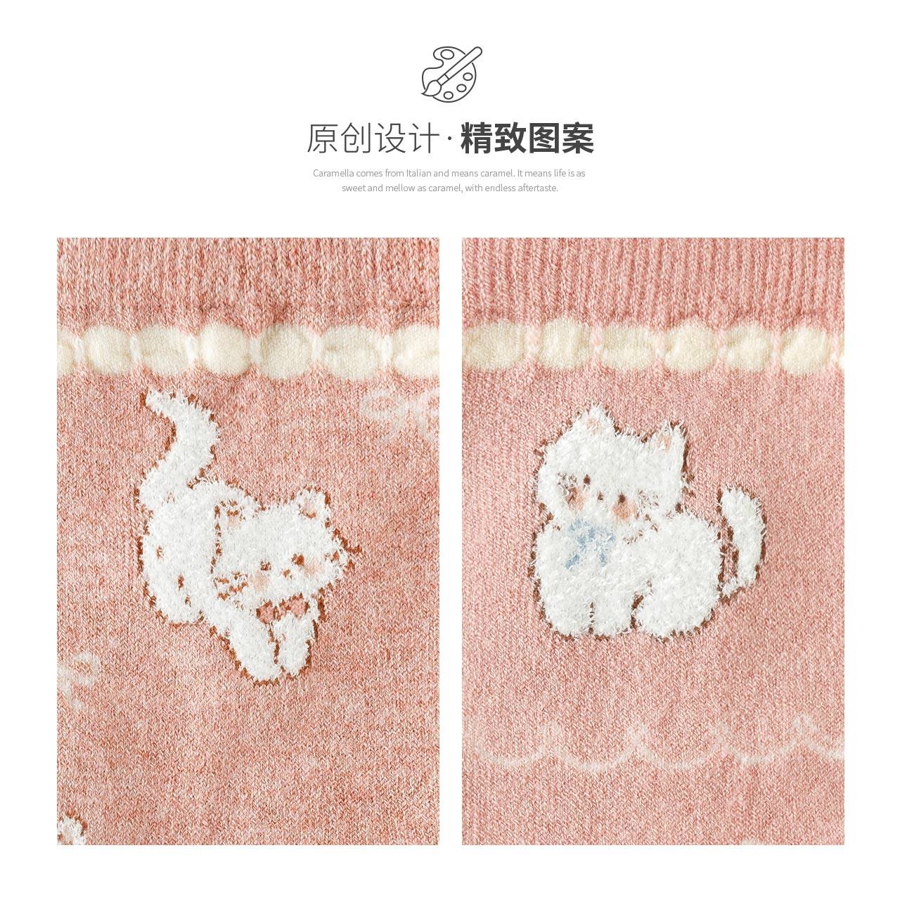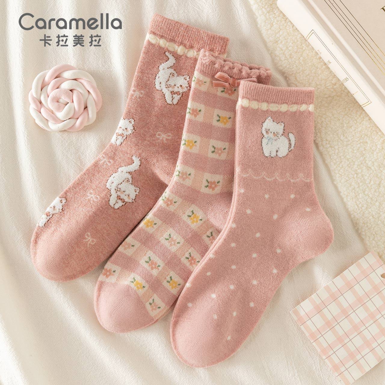 caramella秋冬新款袜子可爱女袜羊毛袜女士中筒袜少女卡通地板袜