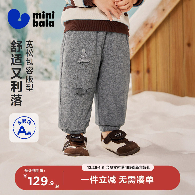 迷你巴拉巴拉男女童宝宝裤子2025冬新品保暖内里加绒柔软舒适长裤