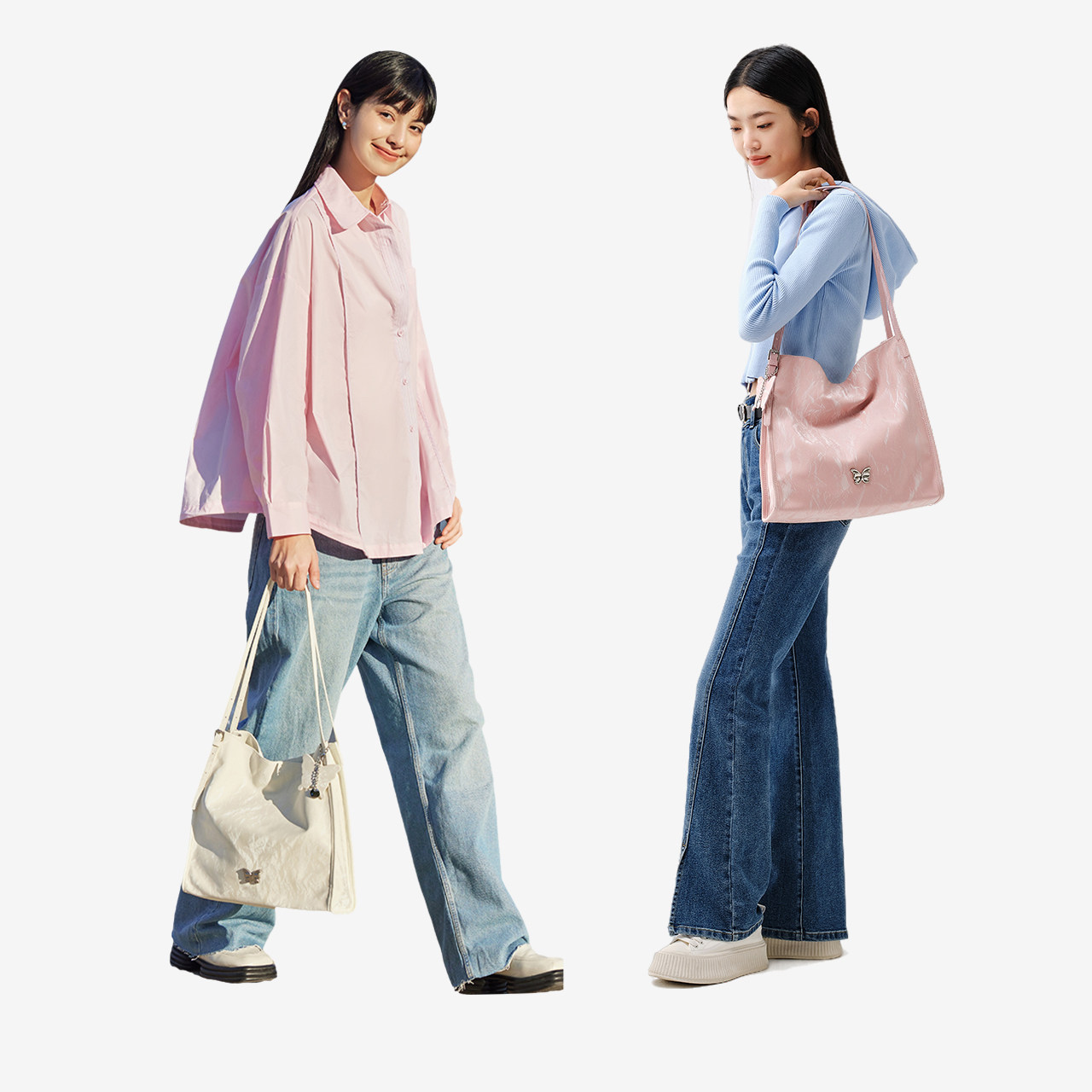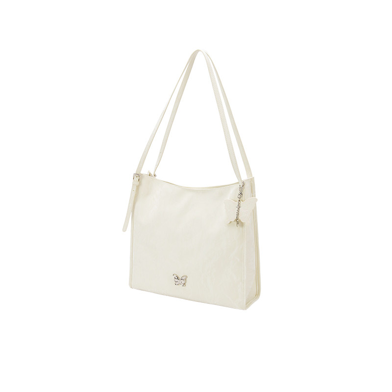 森马包包托特包女时尚大容量蝴蝶高级单肩包简约日常通勤白色女包