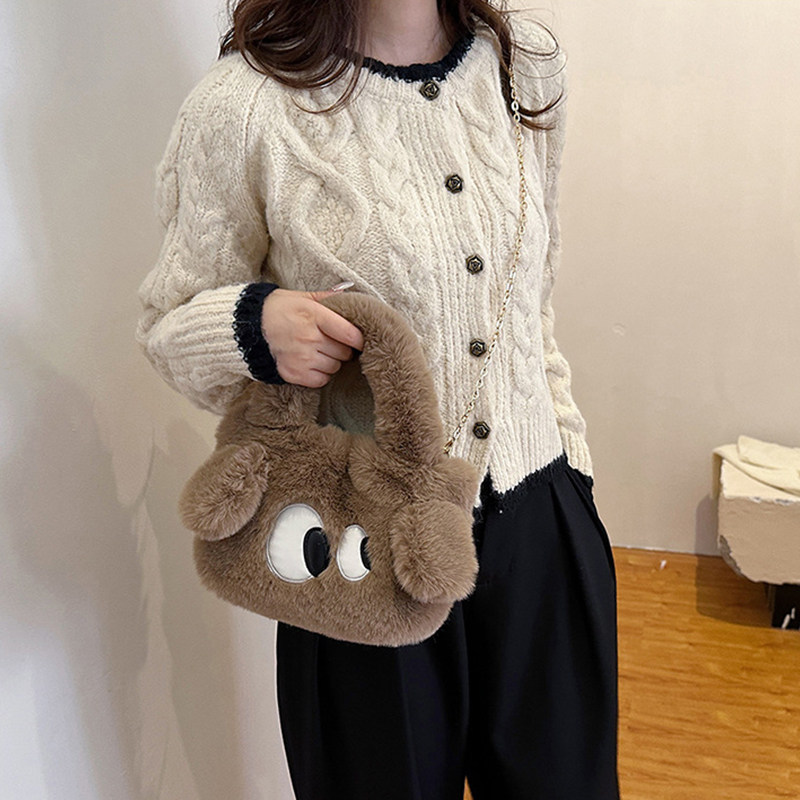 高级感秋冬毛毛绒包女2025新款时尚卡通手提包大容量单肩斜挎包