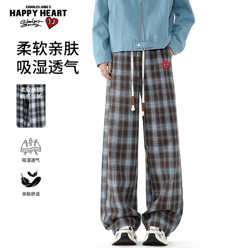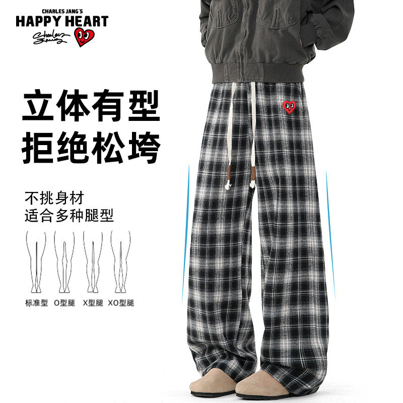查尔斯桃心休闲裤男复古格子裤2025春夏新款潮牌宽松垂感阔腿长裤