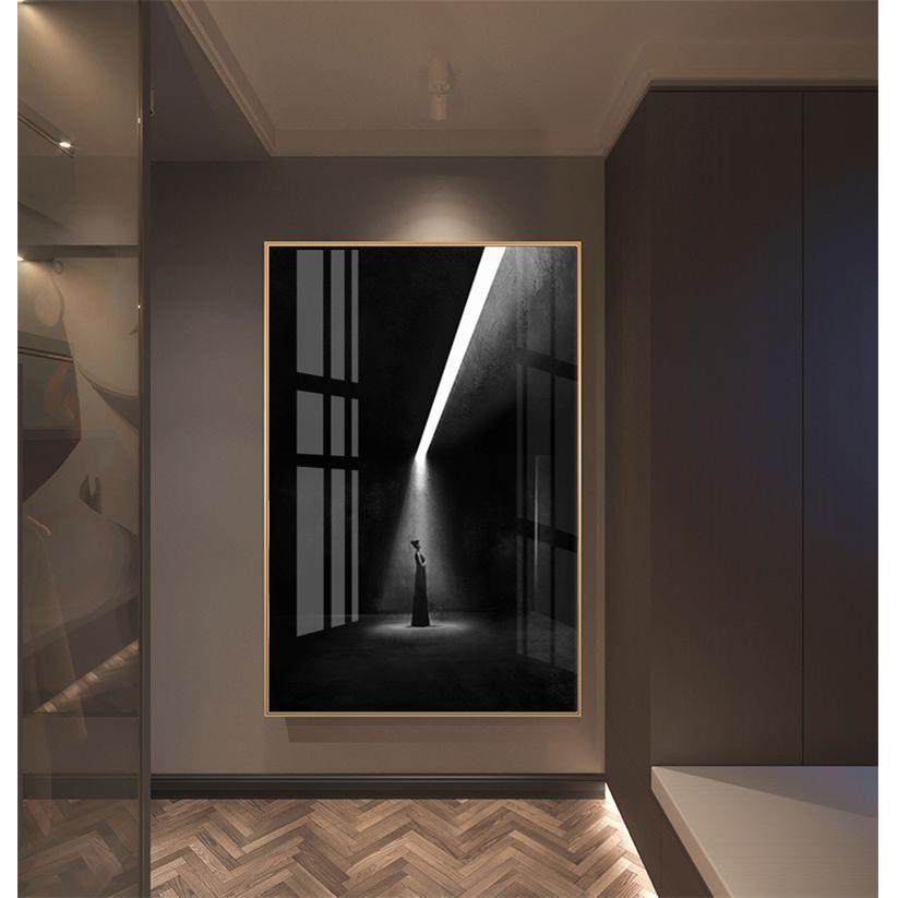 现代简约客厅抽象画大气玄关竖版挂画客厅墙面壁画黑白建筑装饰画