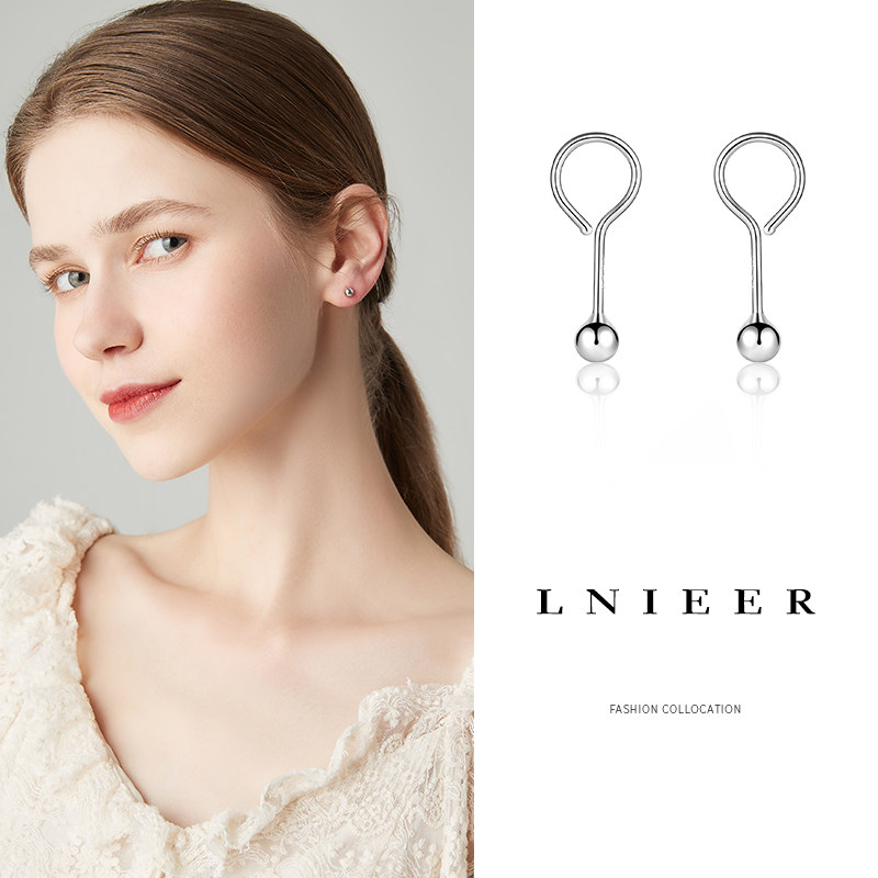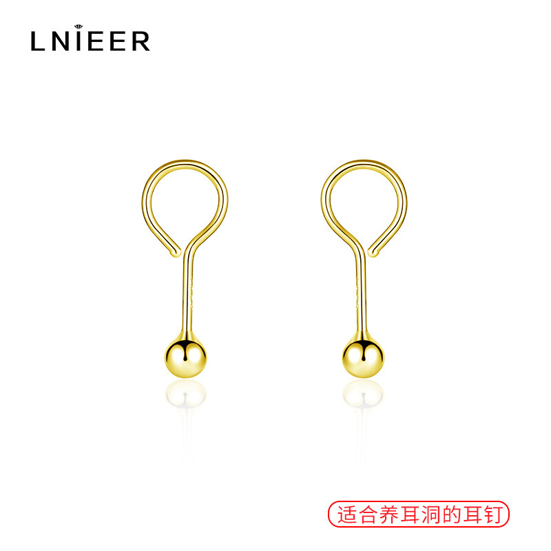 LnieerS999纯银弯钩耳钉女轻奢精致养耳洞耳环睡觉免摘防堵针耳饰