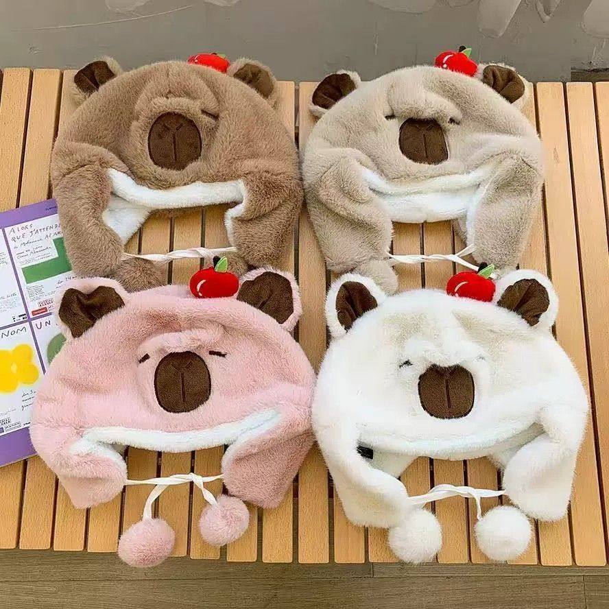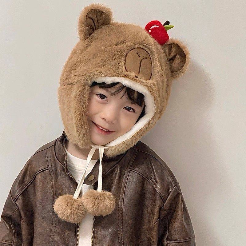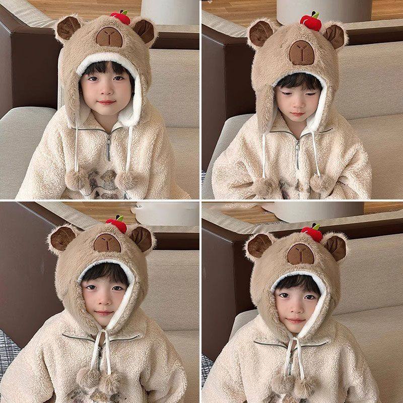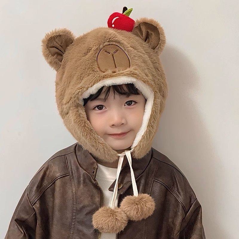 可爱卡通毛绒儿童帽子卡皮巴拉冬季加厚保暖防寒套头护耳帽雷锋帽