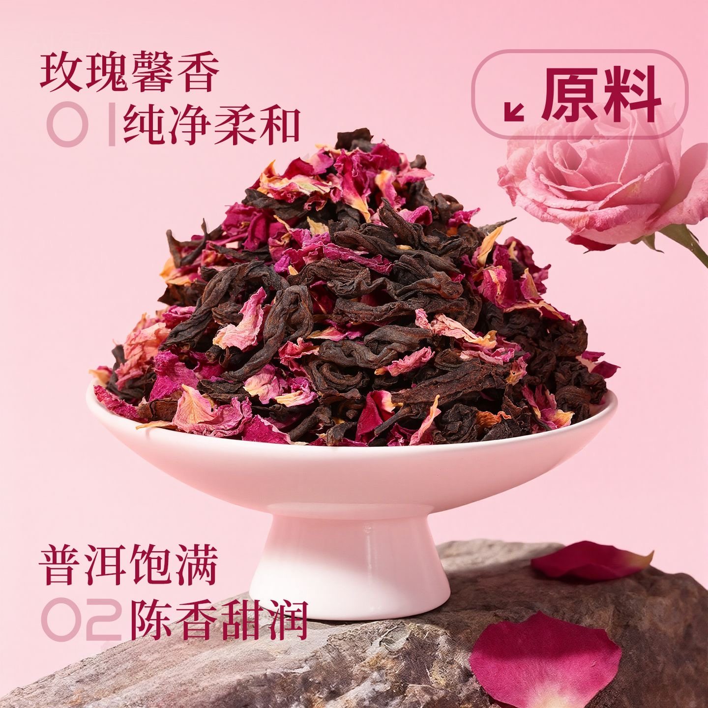 新益号玫瑰花茶普洱熟茶散茶花香调味茶云南特产花香普洱口粮茶叶