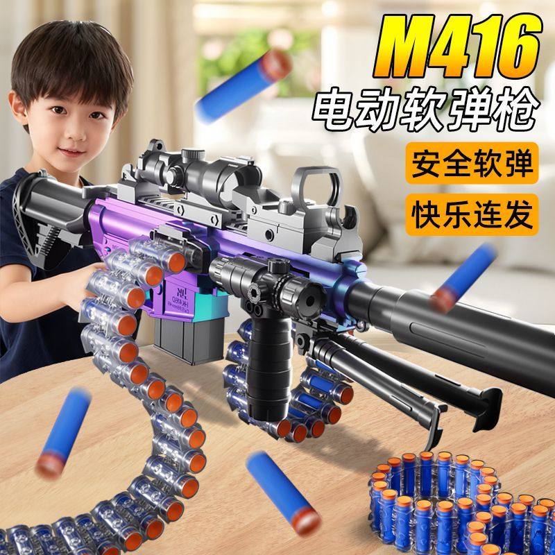 新款m416软弹枪连发加特林软弹玩具儿童玩具枪狙击枪生日礼物电动