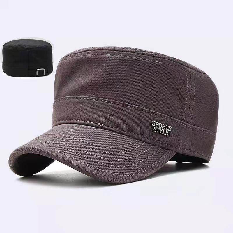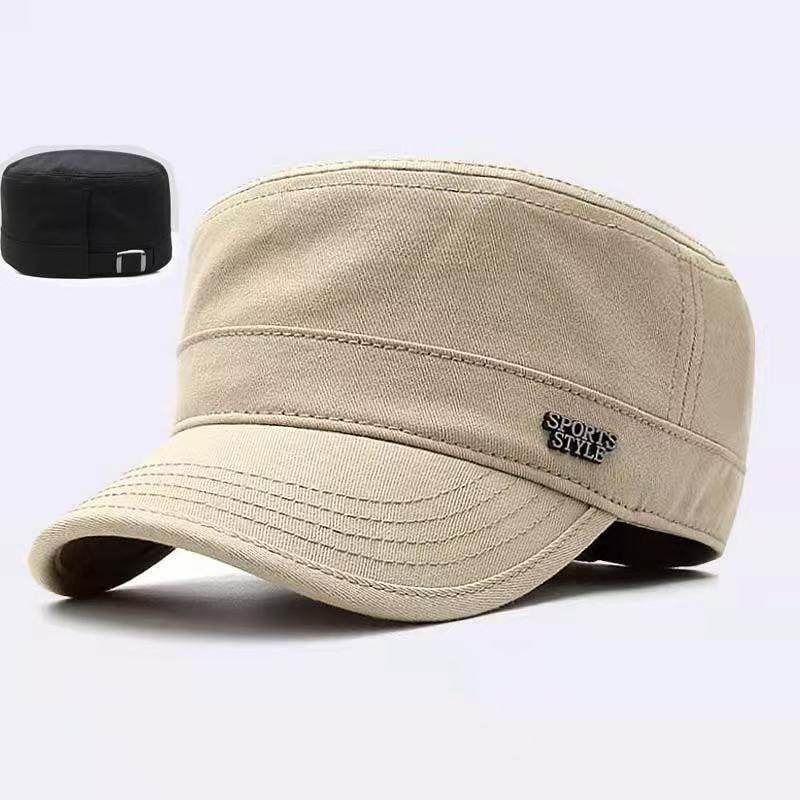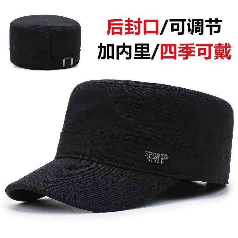 新款纯棉户外休闲中老年鸭舌帽平顶帽子男士封口四季春秋遮阳帽檐