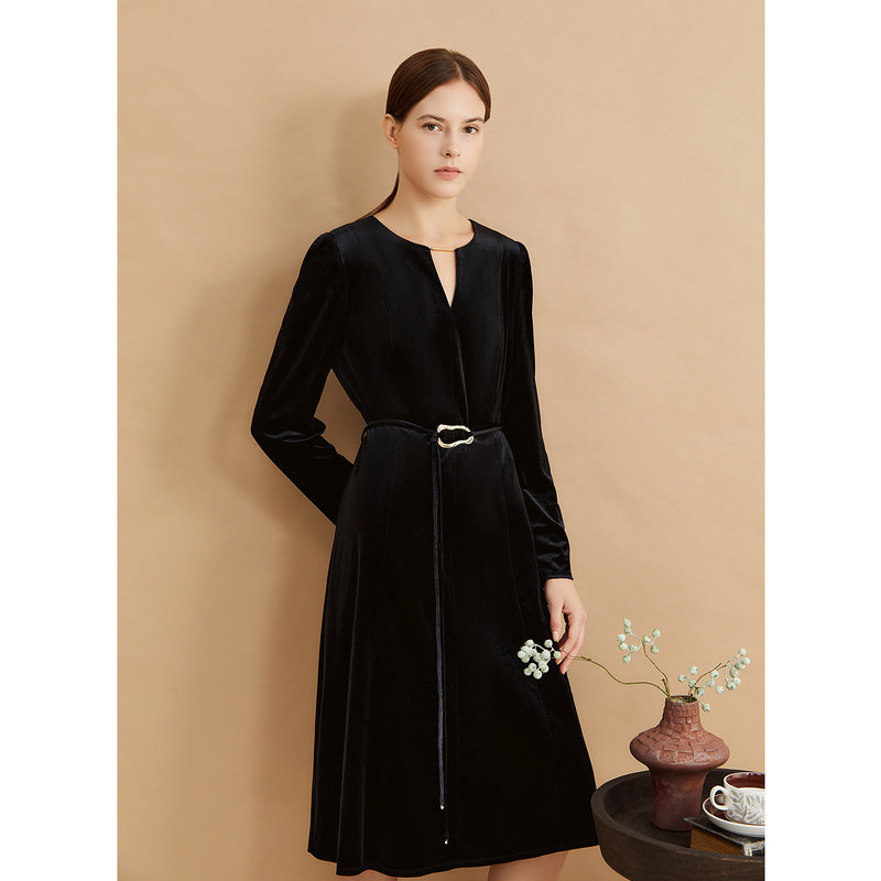 【醋酸系列】YINER音儿专选冬季小黑裙丝绒连衣裙