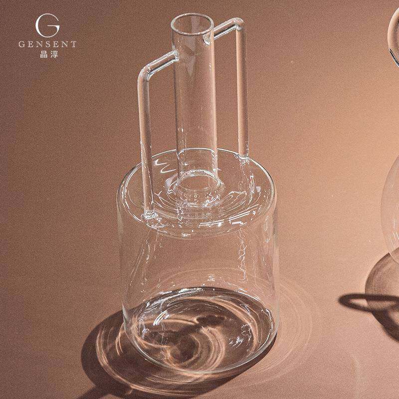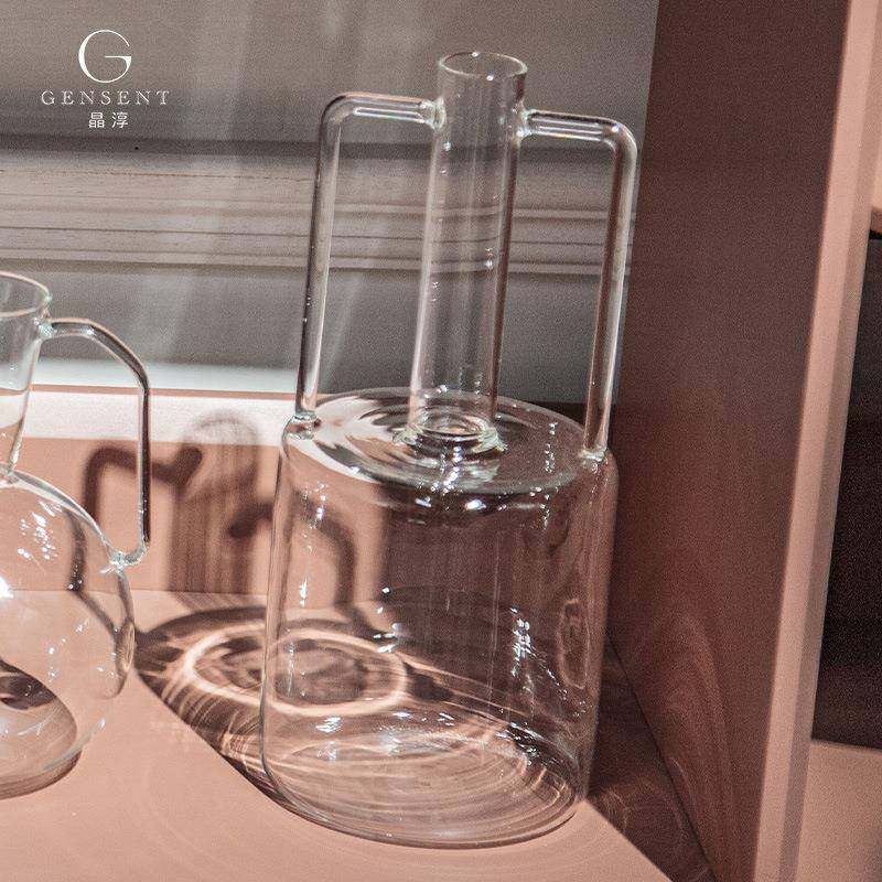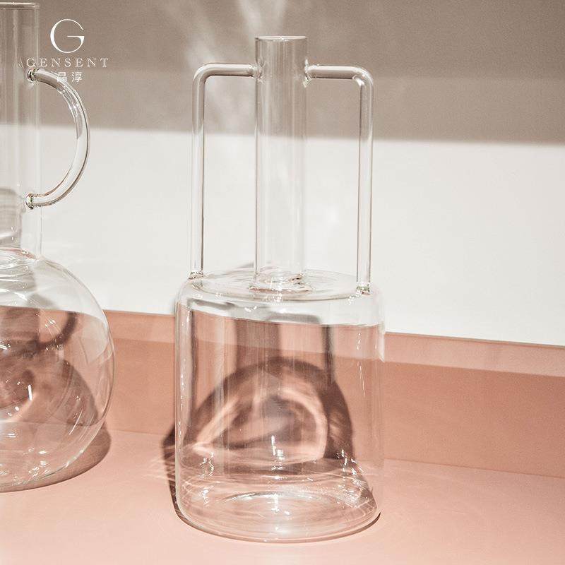 晶淳 高硼硅透明玻璃双耳壶 摆件储水花瓶样板间摆件客厅餐桌软装