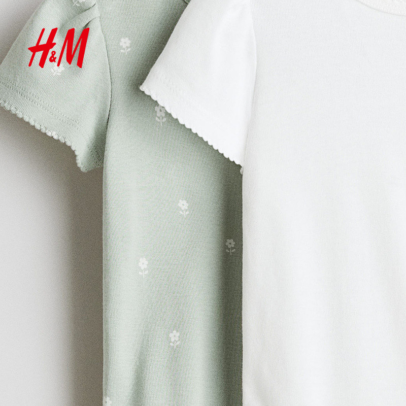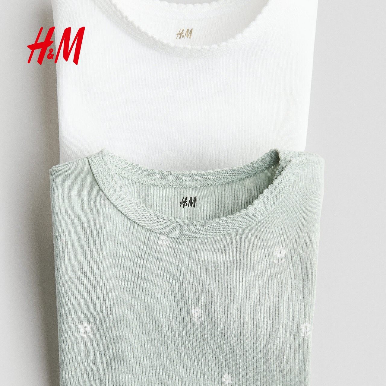 HM婴儿装男婴女婴连身衣2件装春季装棉质短袖柔软哈衣1159373