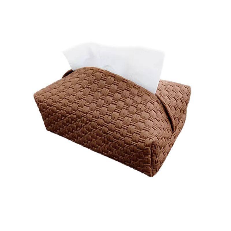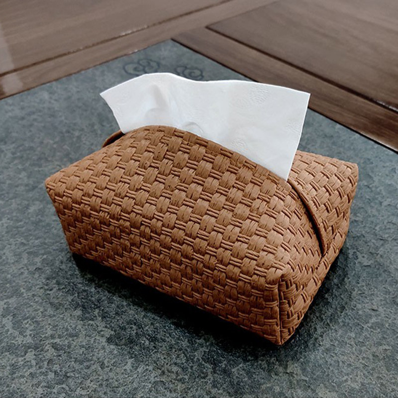 高级轻奢藤编纹纸巾盒防水皮抽纸收纳盒客厅卧室车载编织房间中古