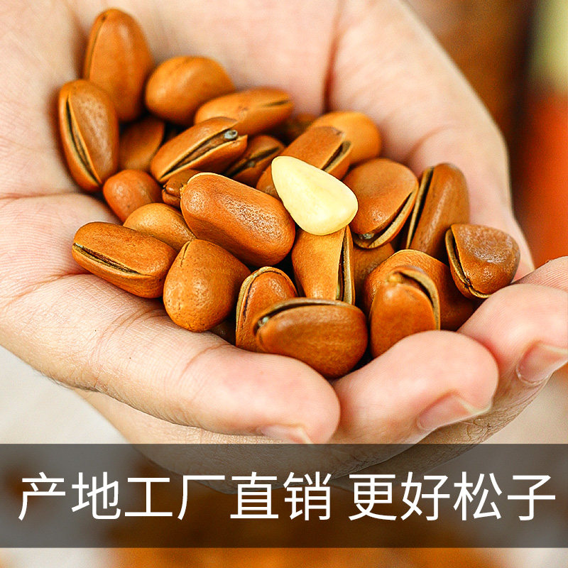 新货开口松子东北手剥原味坚果松树屯特大颗粒大红松子新松子500g