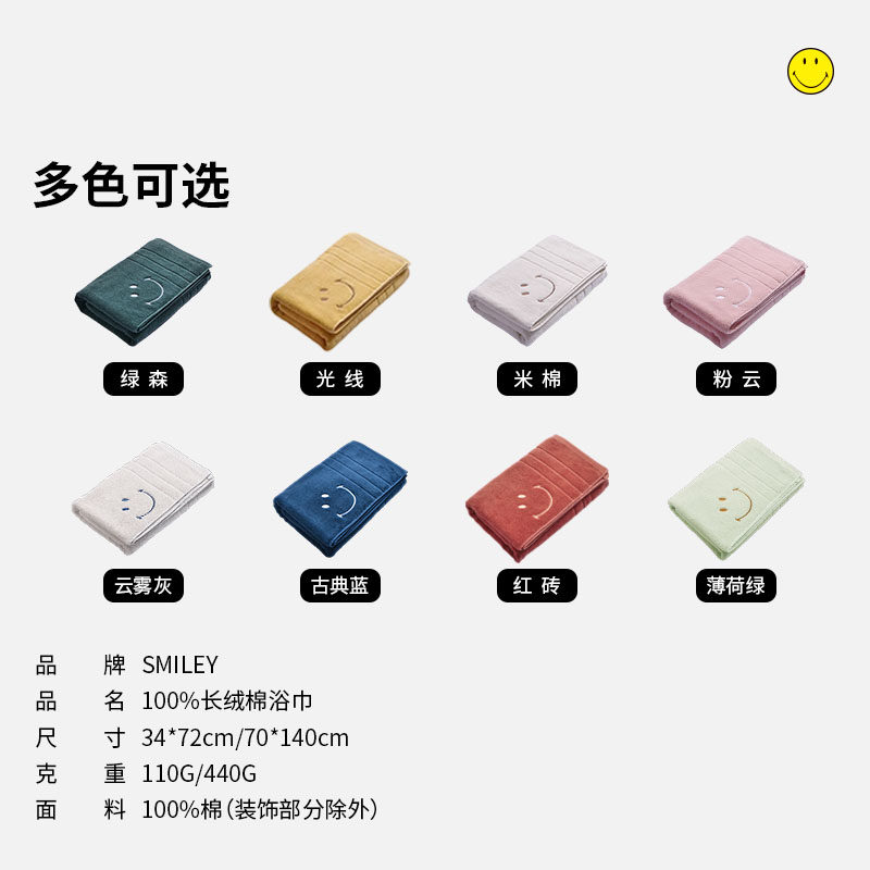 SMILEY新疆长绒棉纯棉浴巾家用全棉吸水洗澡毛巾抑菌