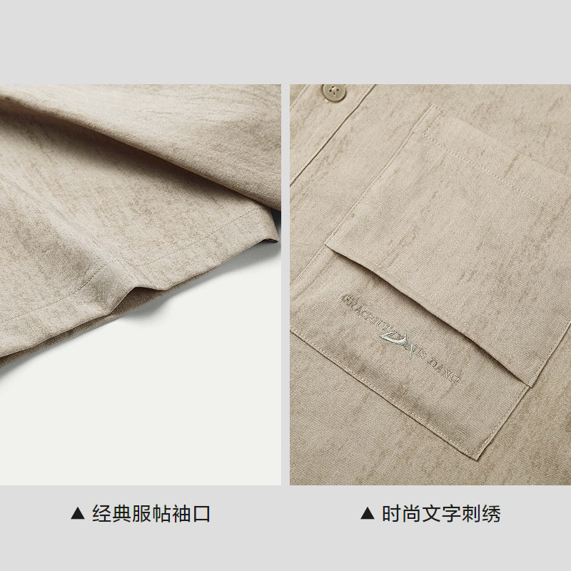 HLA/海澜之家山不在高系列短袖衬衫25春夏新刺绣梭织透气衬衣男