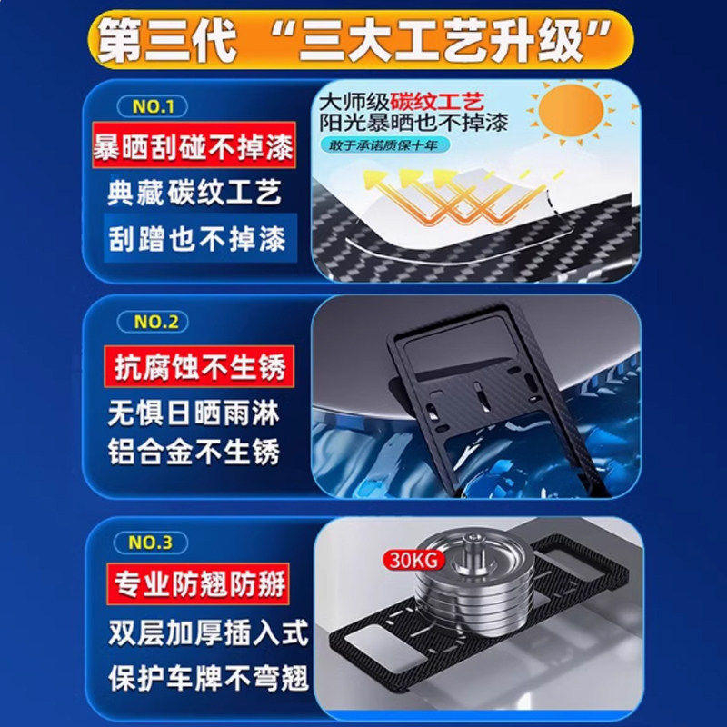 加厚双层汽车牌照框钛镁合金防掰防翘车牌保护框蓝牌新能源车牌架