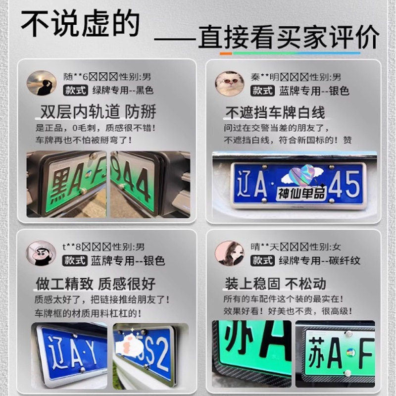 新交规车牌边框镶钻牌照框钻石新能源绿牌车牌框架车牌套车牌托钻