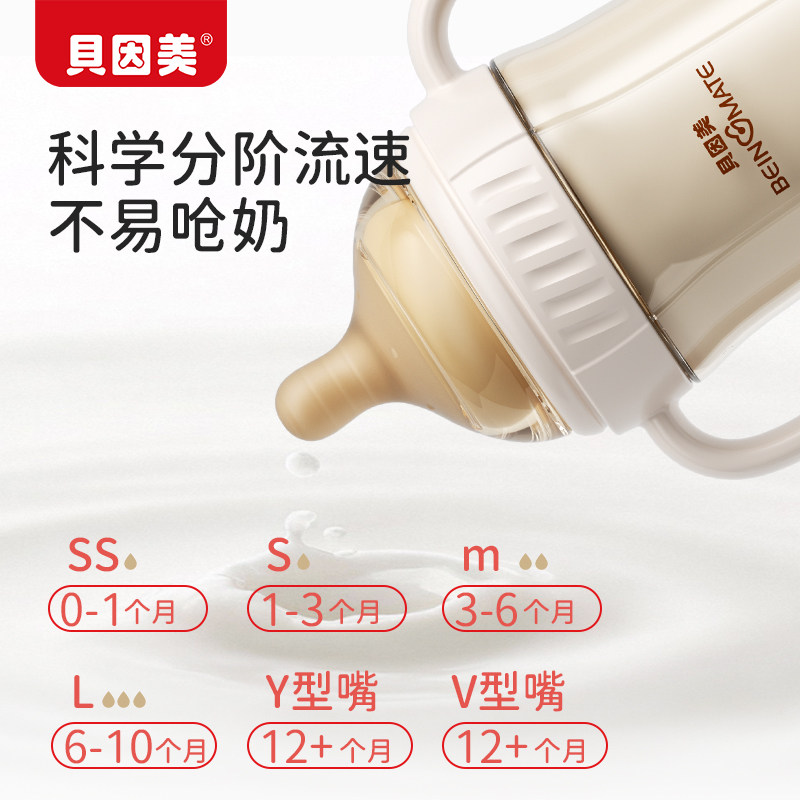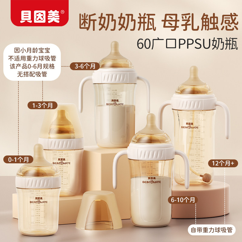 贝因美PPSU奶瓶宽口径0-6个月宝宝奶瓶戒断奶新生儿吸管奶瓶