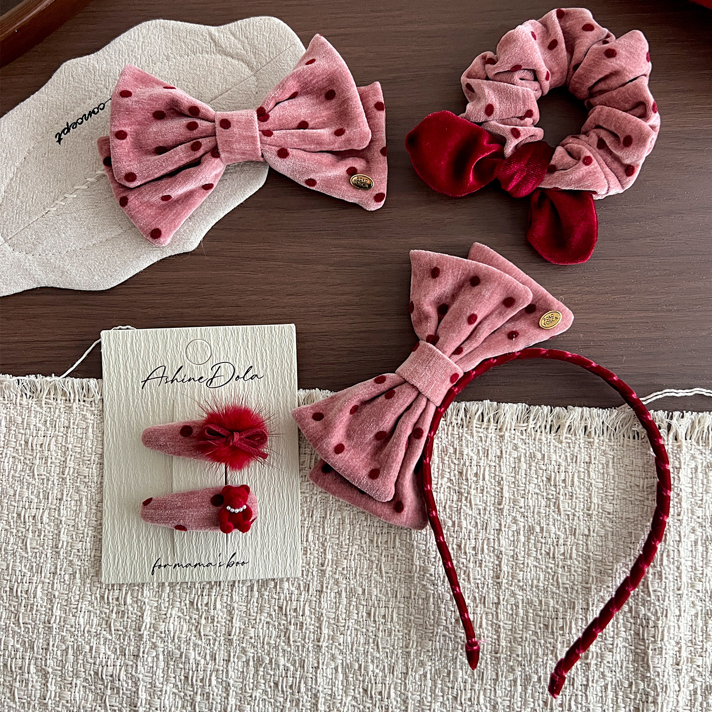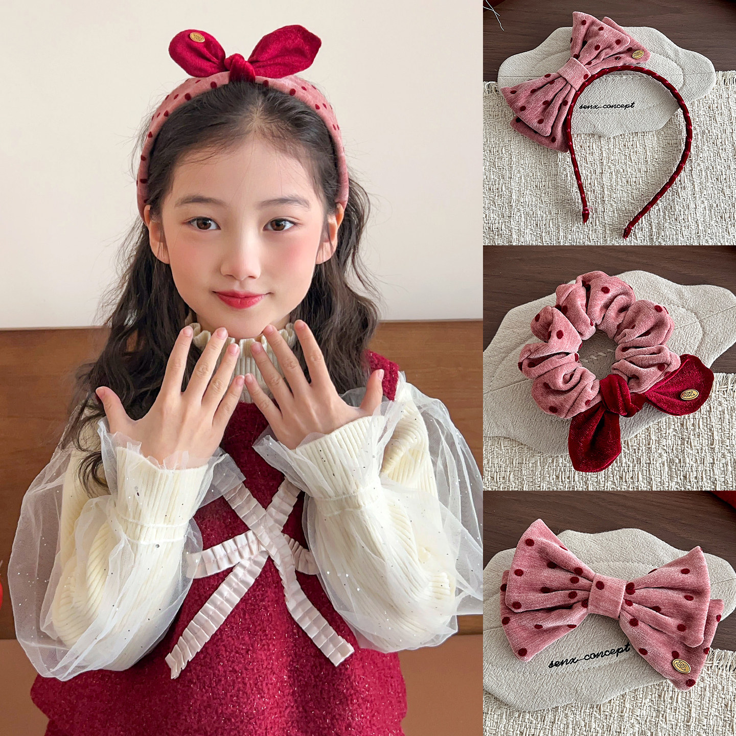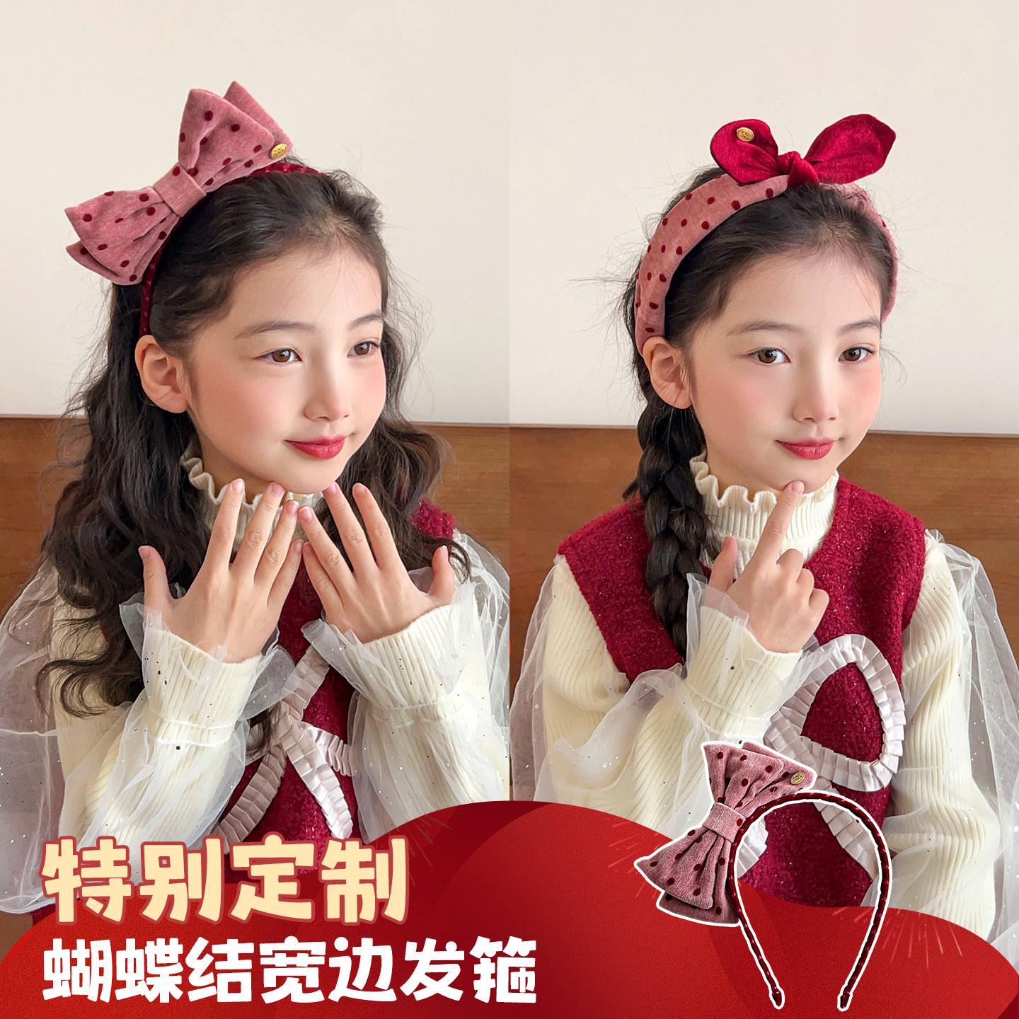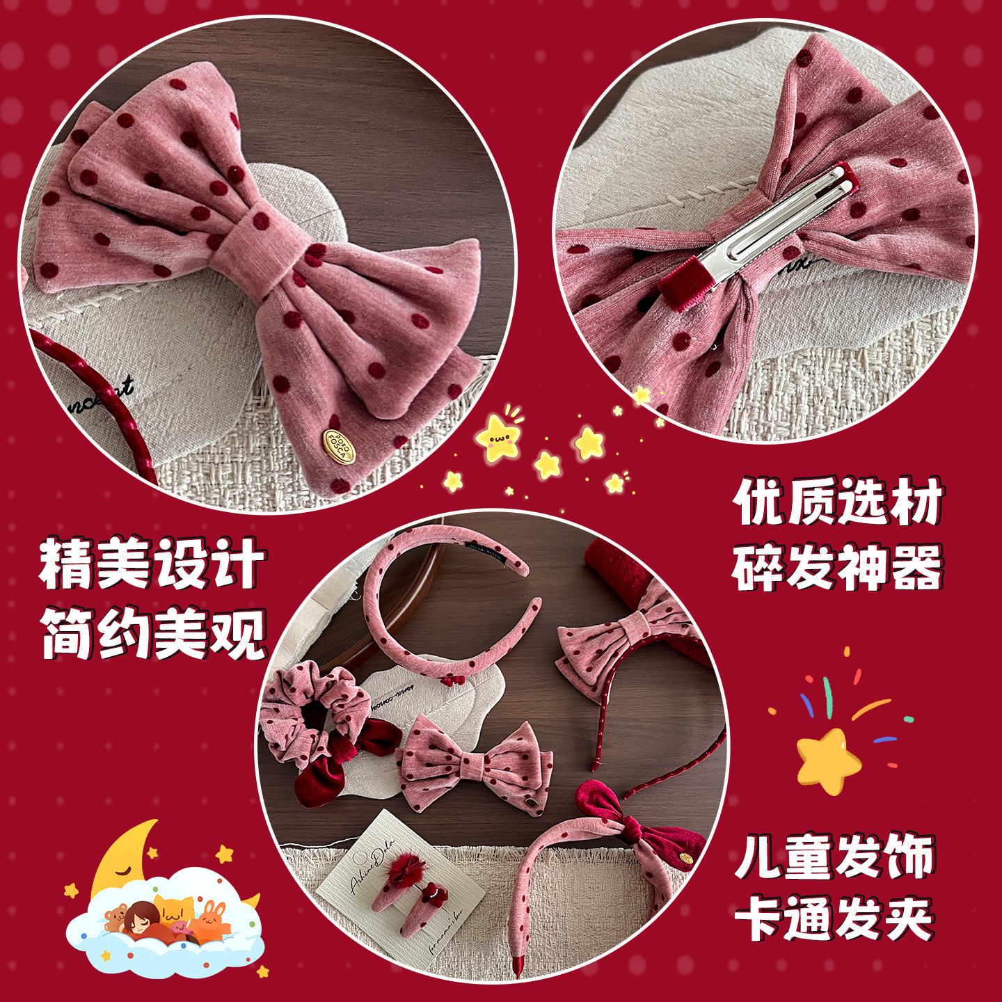 儿童植绒蝴蝶结波点发箍秋冬新款小熊压发卡宝宝新年防滑不勒头箍