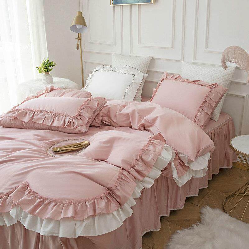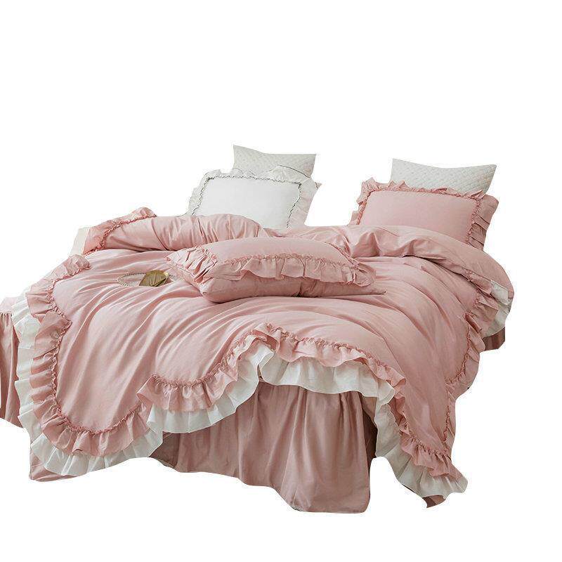 韩式荷叶边四件套床裙款少女心全棉纯棉公主风床单被套床上用品