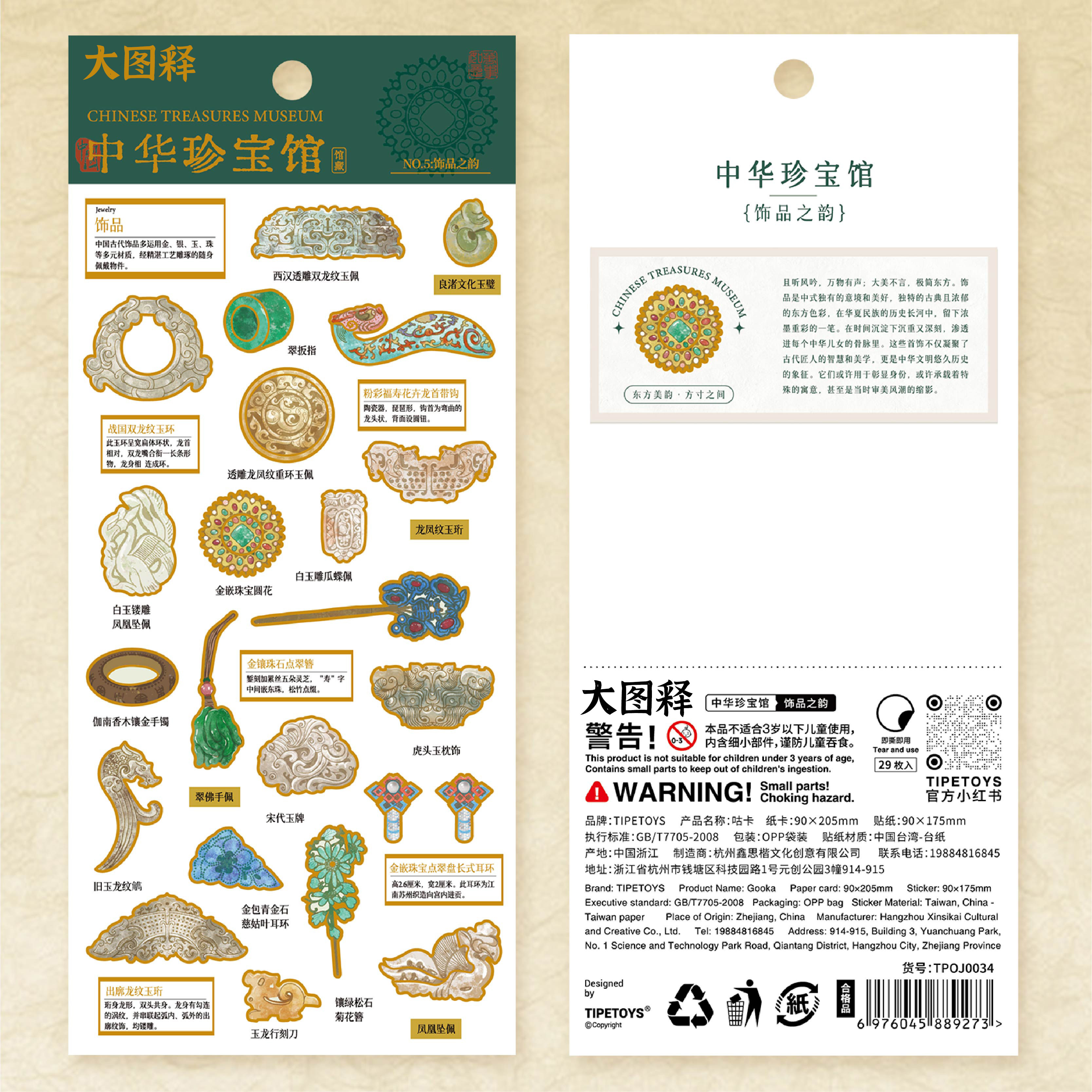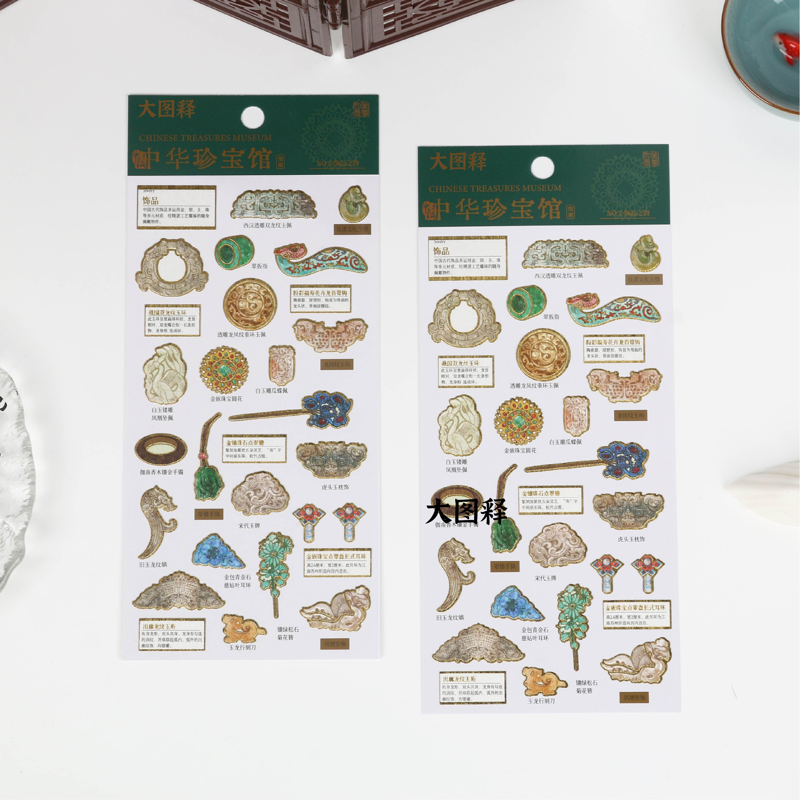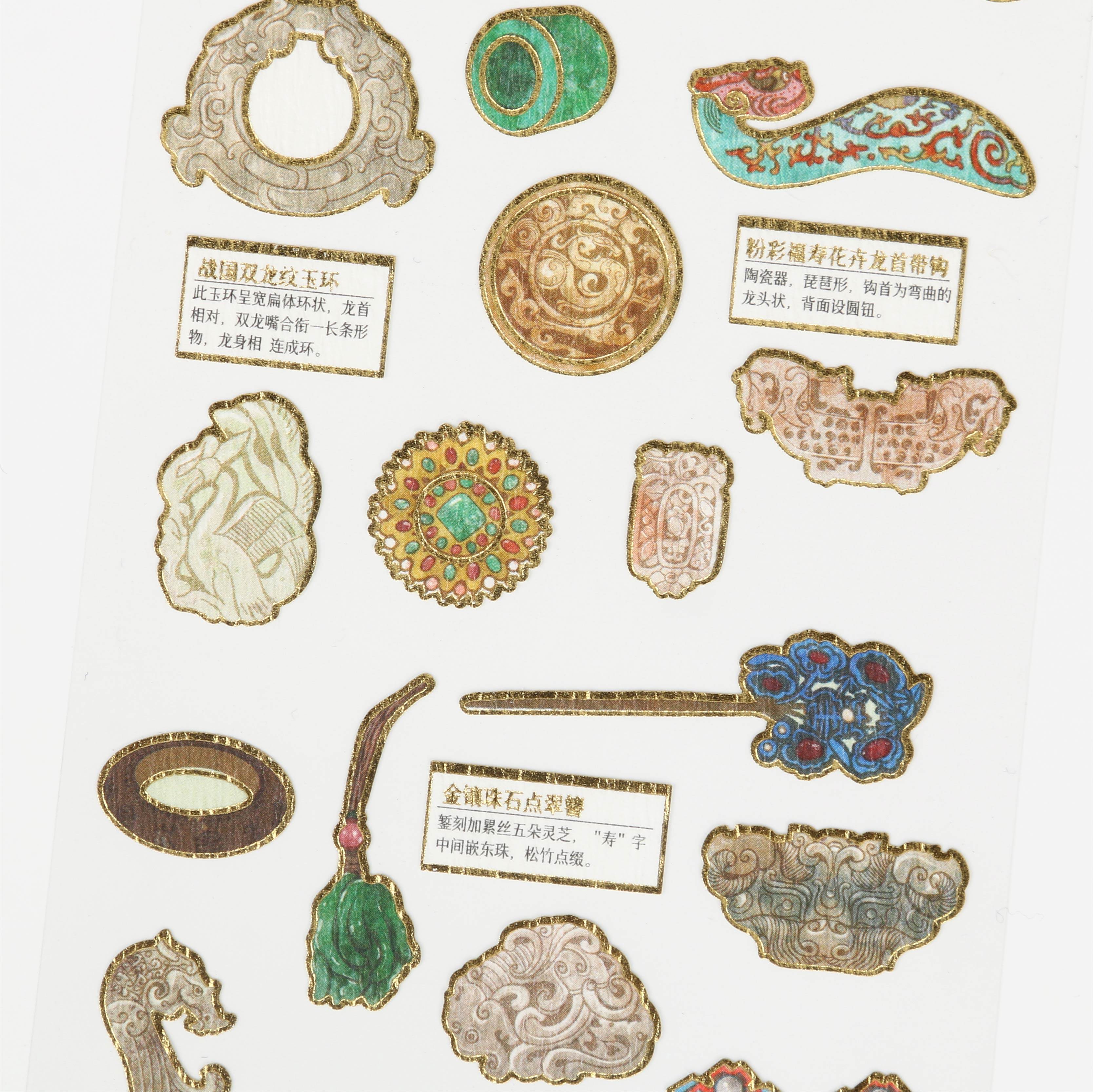 【大图释官方授权】中华珍宝馆系列首饰中国风文物饰品装饰烫金diy自粘手账手机壳桌面贴纸素材标签精美贴画