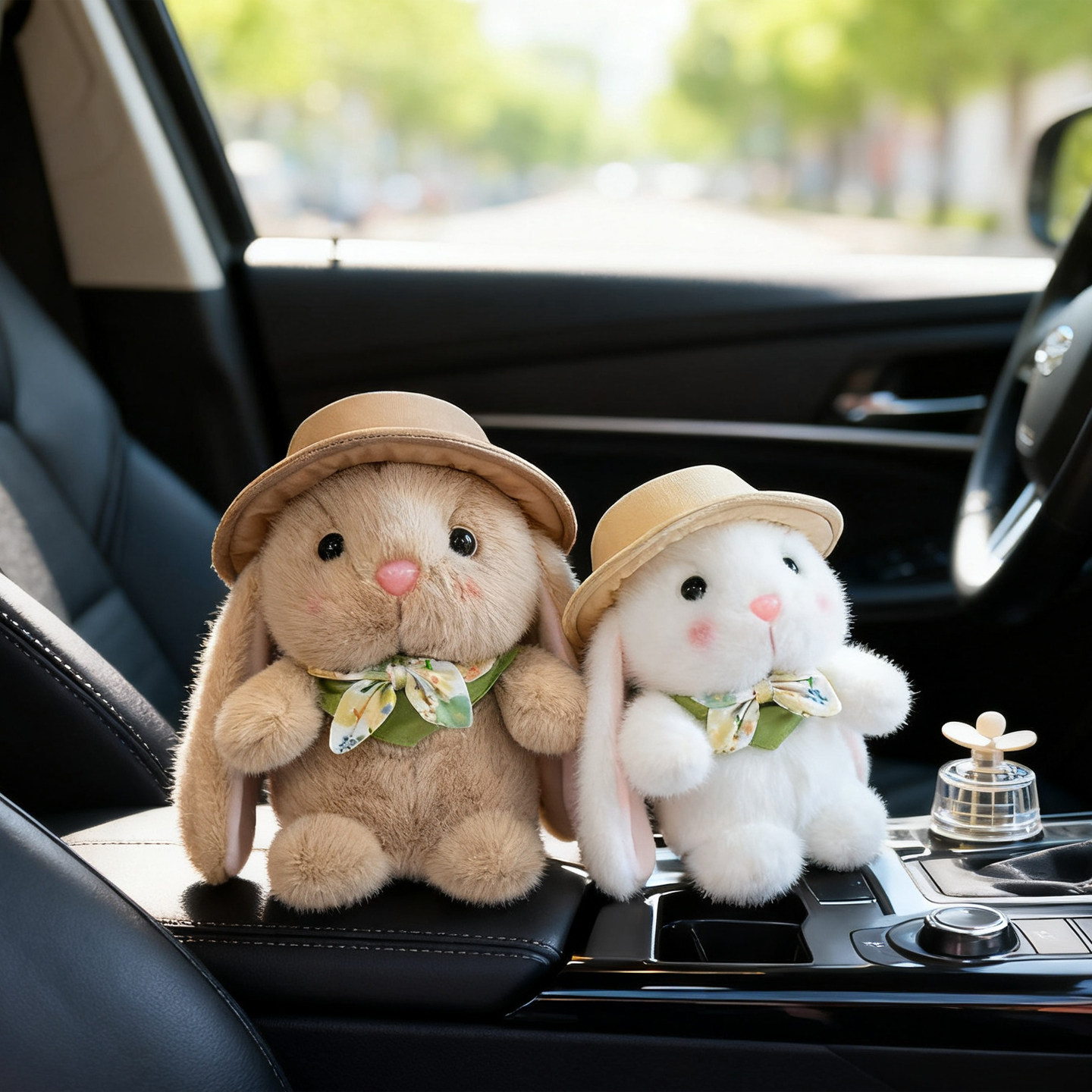 网红汽车旅行小兔子公主玩偶公仔装饰品摆件车载竹炭包活性碳去味