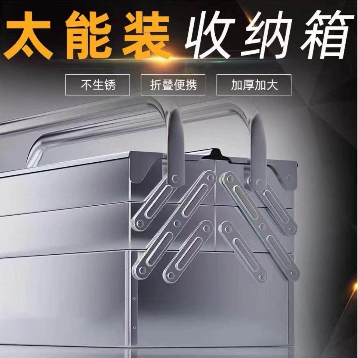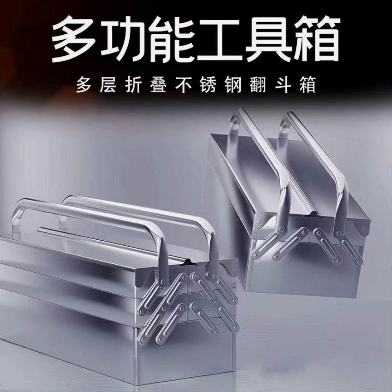 手提式铁皮工业级收纳盒多功能特厚不锈钢工具箱三层折叠家用车载