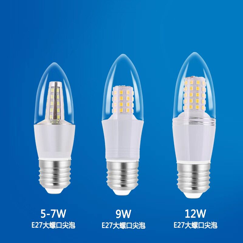 巨祥LED蜡烛灯泡 e14小螺口尖泡5W7W9W12w拉尾水晶吊灯光源节能灯