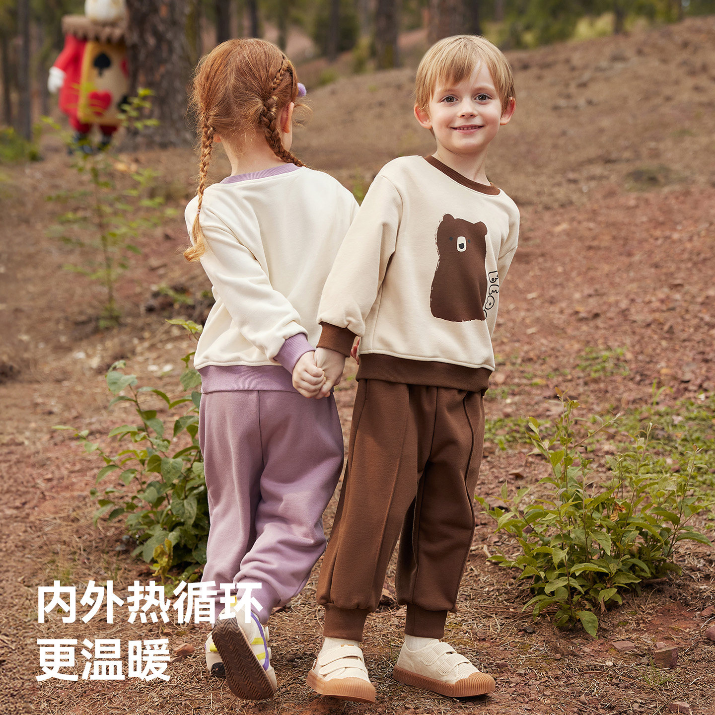 儿童卫衣套装秋冬男童两件套加绒保暖女童分体衣服国风宝宝新年服