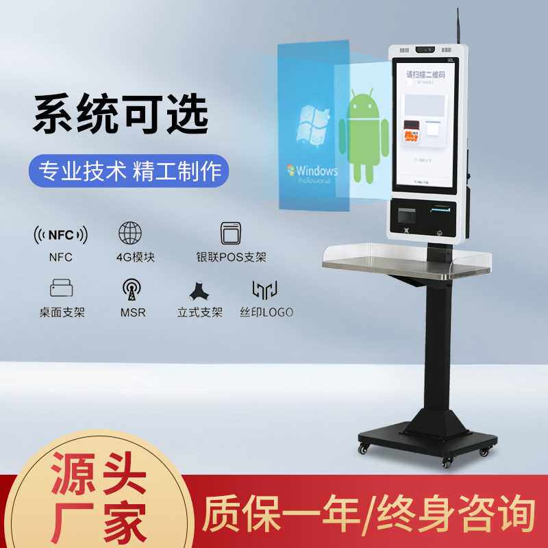 超市便利店收银机多语言立式餐饮店自助点餐机自助收银扫码一体机