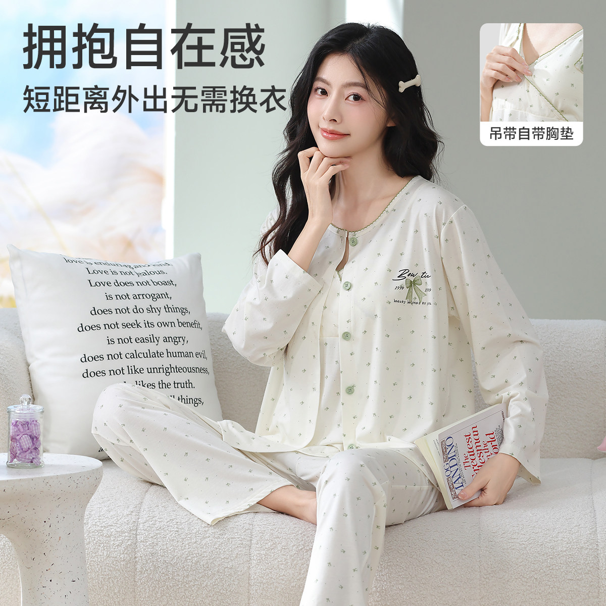 带胸垫月子服冬季纯棉产后全棉吸汗哺乳期孕妇睡衣夏季产妇家居服