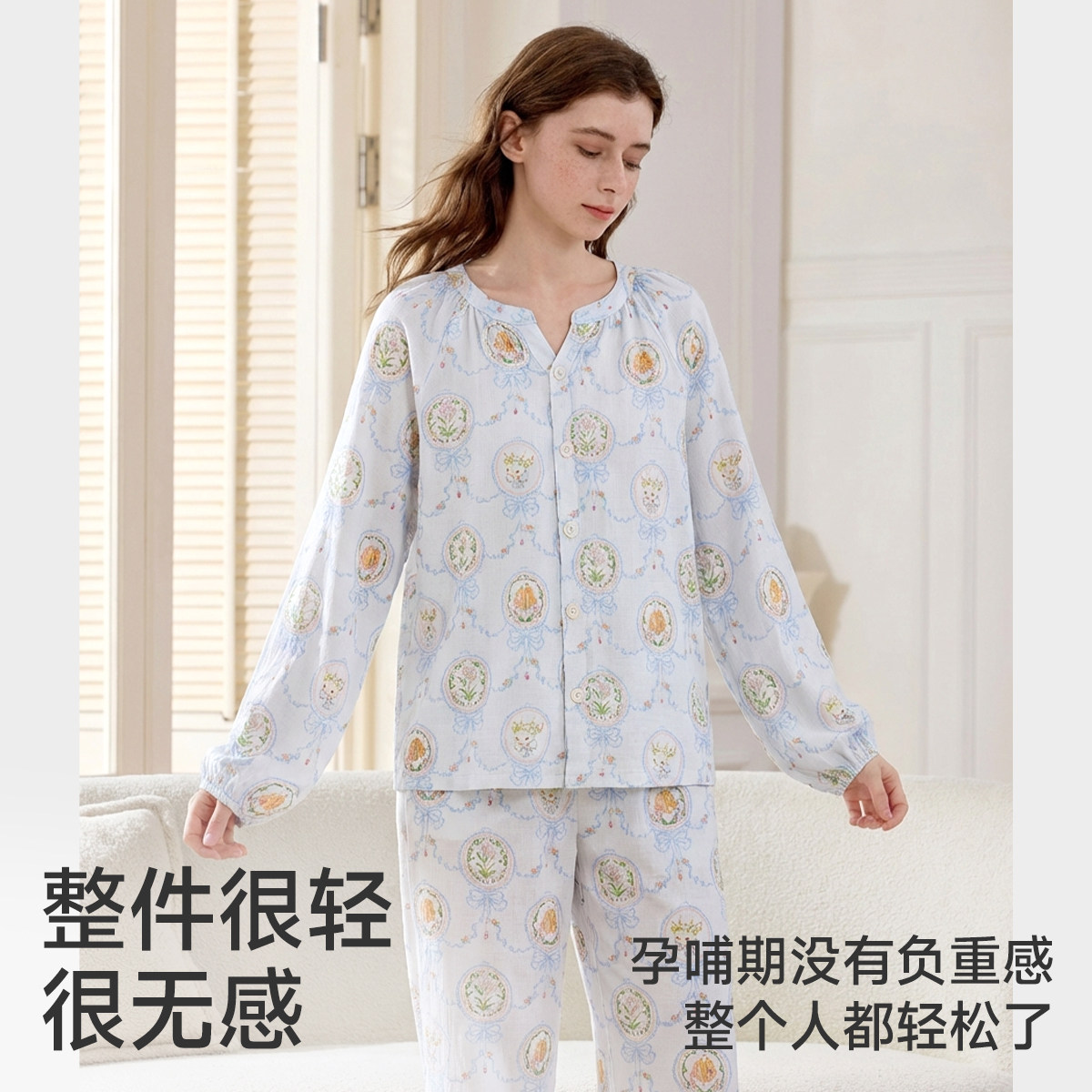 十月结晶风悦花信月子服纯棉家居服套装纱罗10A抗菌超透气春季款