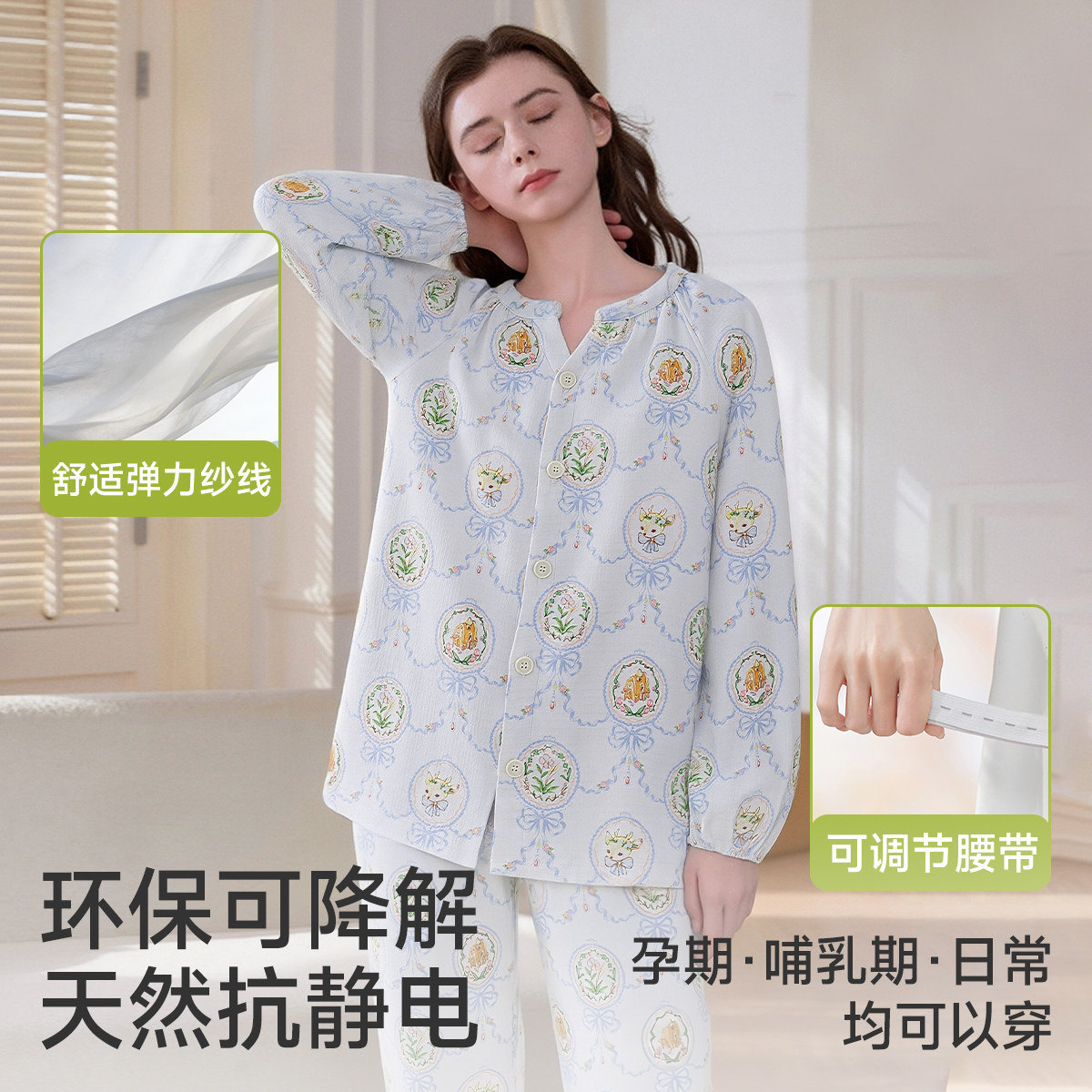 空气棉月子服秋冬纯棉产后夏季薄款全棉吸汗喂奶产妇哺乳孕妇睡衣