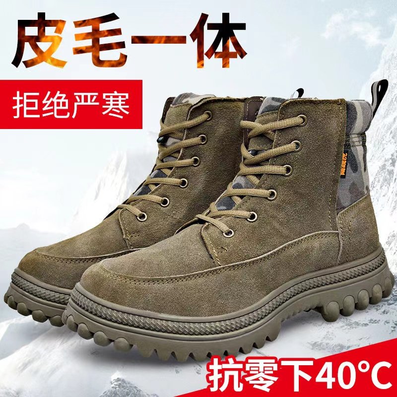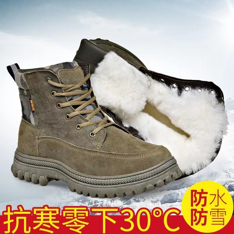 羊毛雪地靴男冬季皮毛一体棉靴东北加绒加厚保暖牛皮棉鞋厚底抗寒