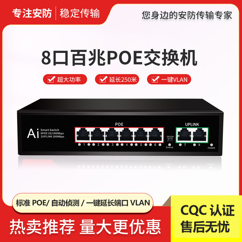 千兆百兆POE交换机6口8口10口12口国标准48V供电器网络监控摄像头无线AP电源大功率250米传输VLAN防雷1010GB
