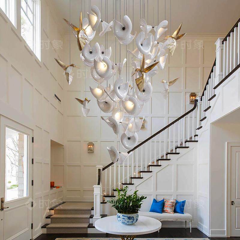 豪华客厅灯艺术创意设计师现代轻奢别墅陶瓷花灯复式楼楼梯长吊灯