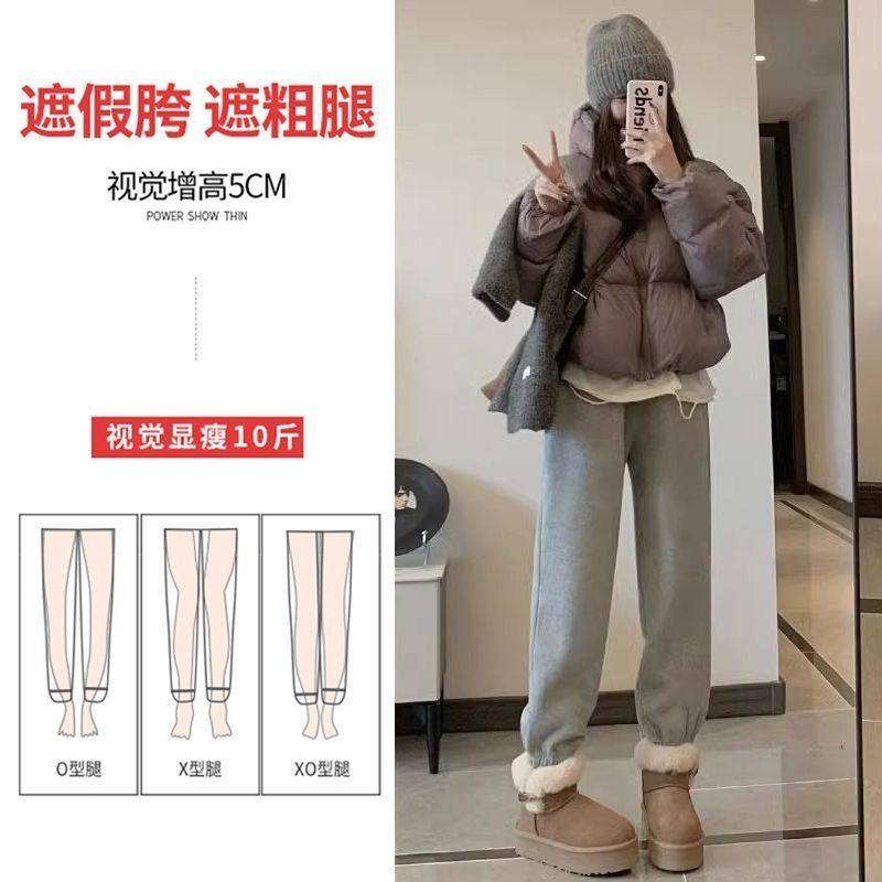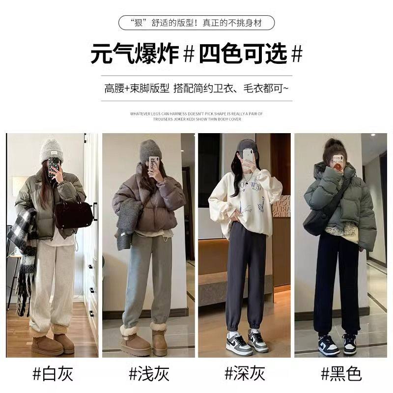 婧麒孕妇裤子秋冬季外穿东北羊羔绒运动裤加绒无托腹大码束脚卫裤