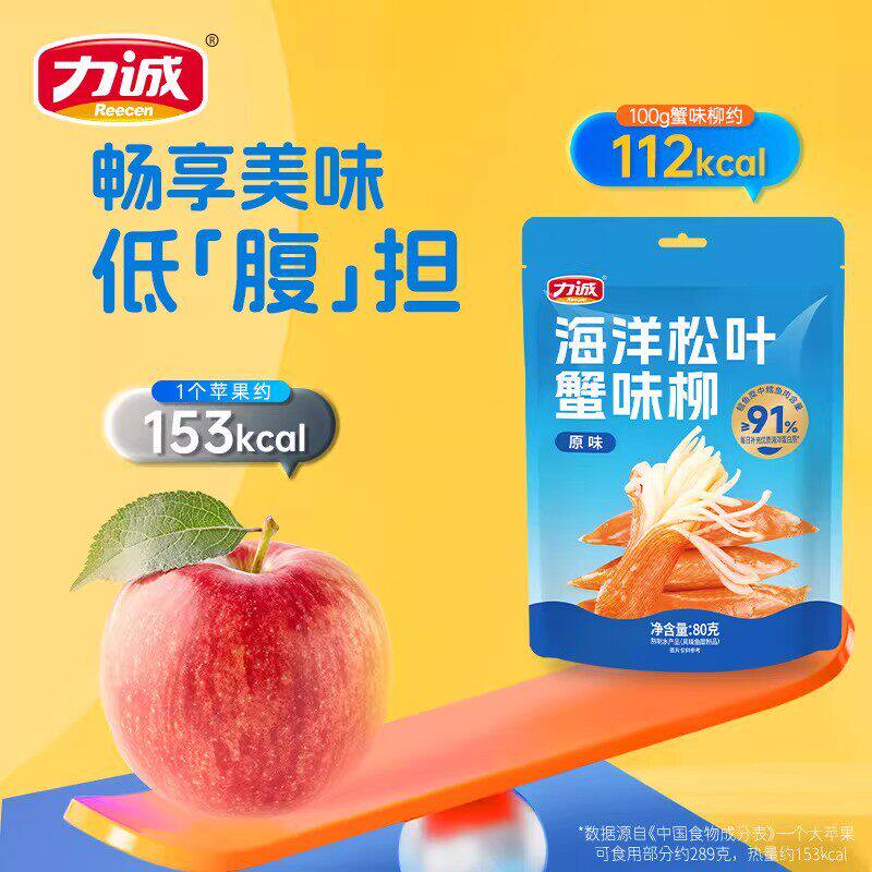 力诚海洋松叶蟹柳低脂蟹柳手撕即食蟹足蟹味柳休闲轻食高蛋白零食