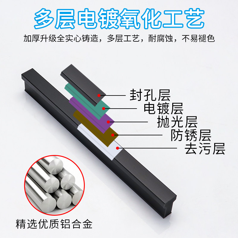 T型加长铝合金黑色美式现代简约衣柜门把手柜门整体橱柜抽屉隐形