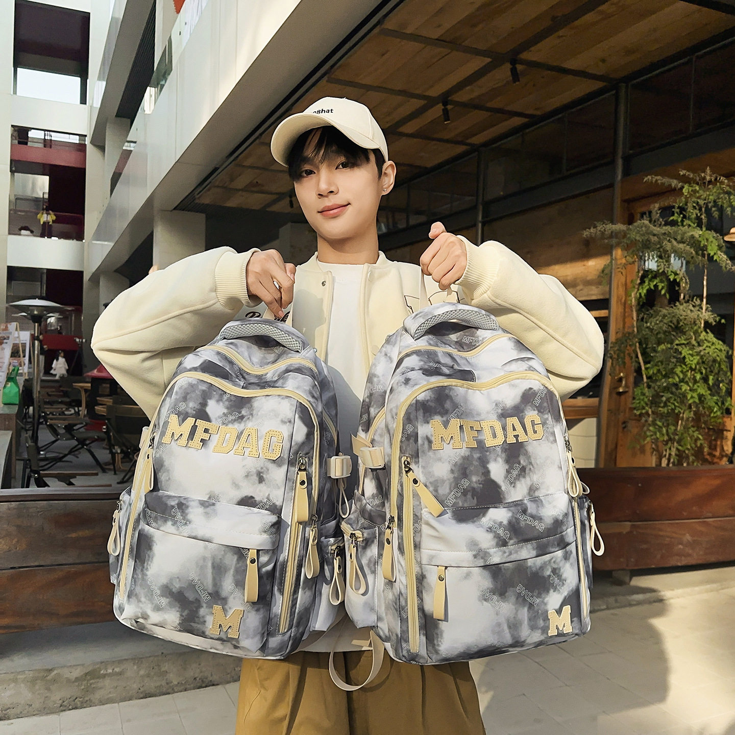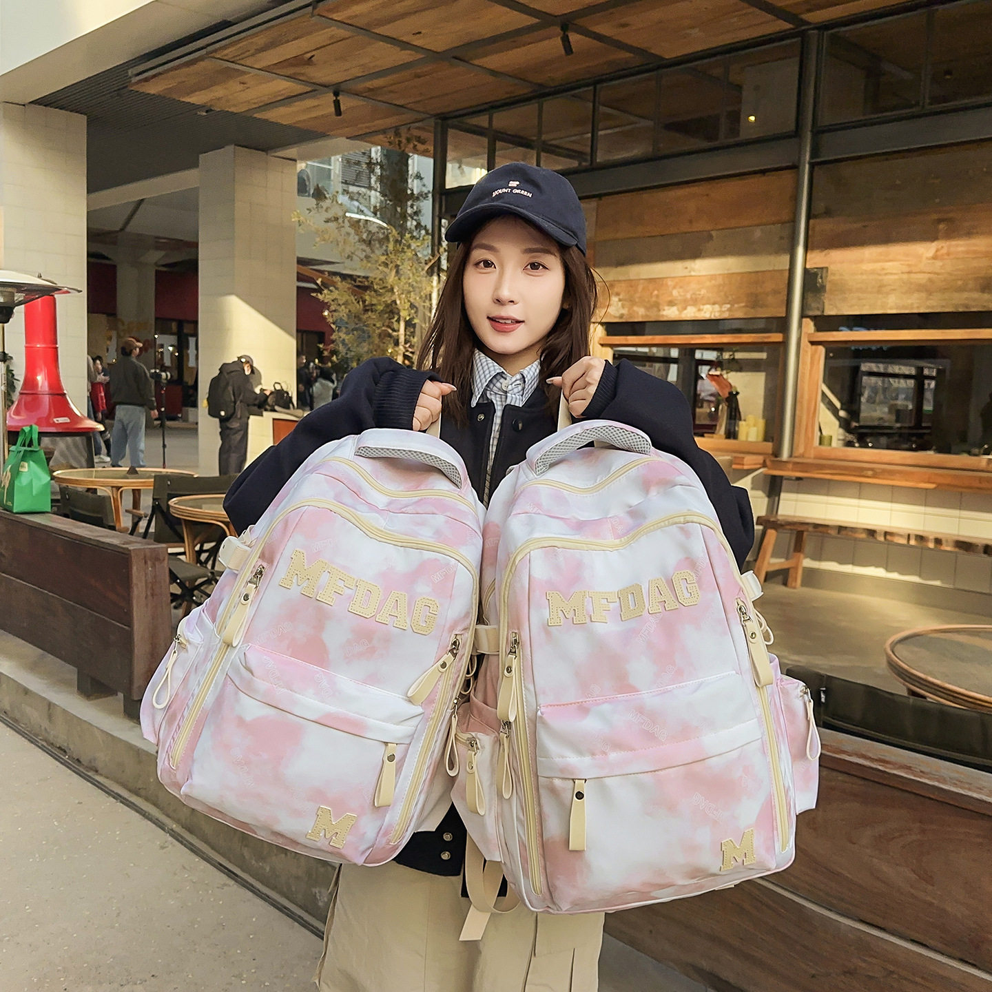 日系ins新款扎染书包学生大容量背包韩版原宿初中生清新双肩包包