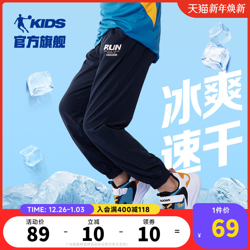 乔丹童装男童速干裤儿童运动裤2025夏季新款大童舒适防蚊薄款长裤