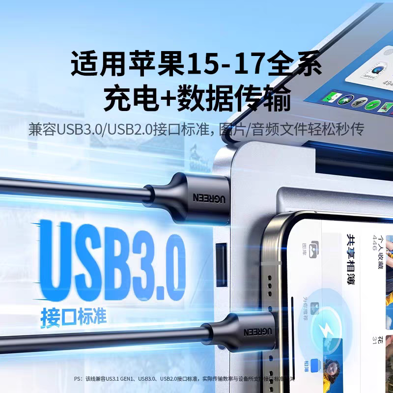 usb3.0转typec数据线接移动硬盘电脑数据传输刷机 安卓手机快充线