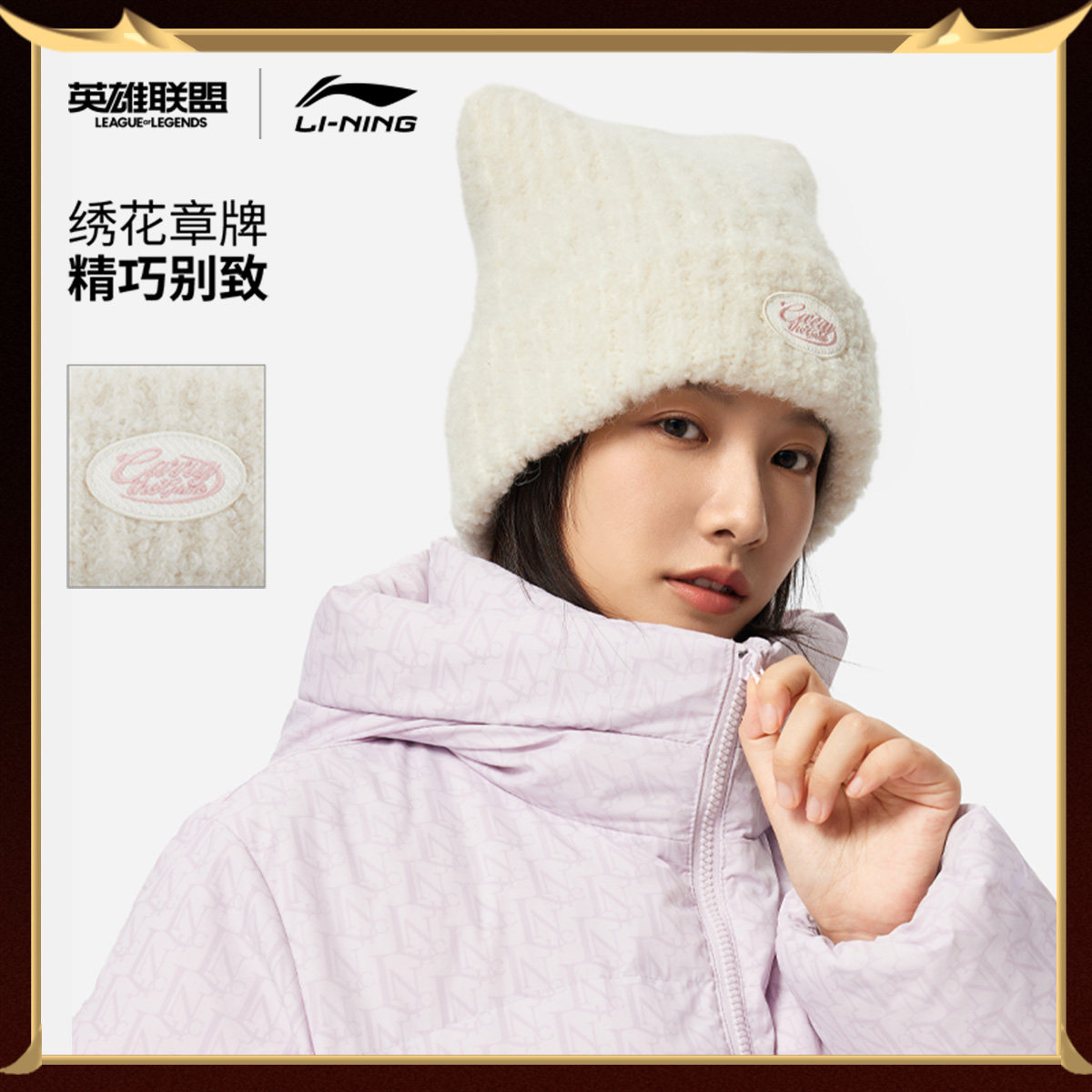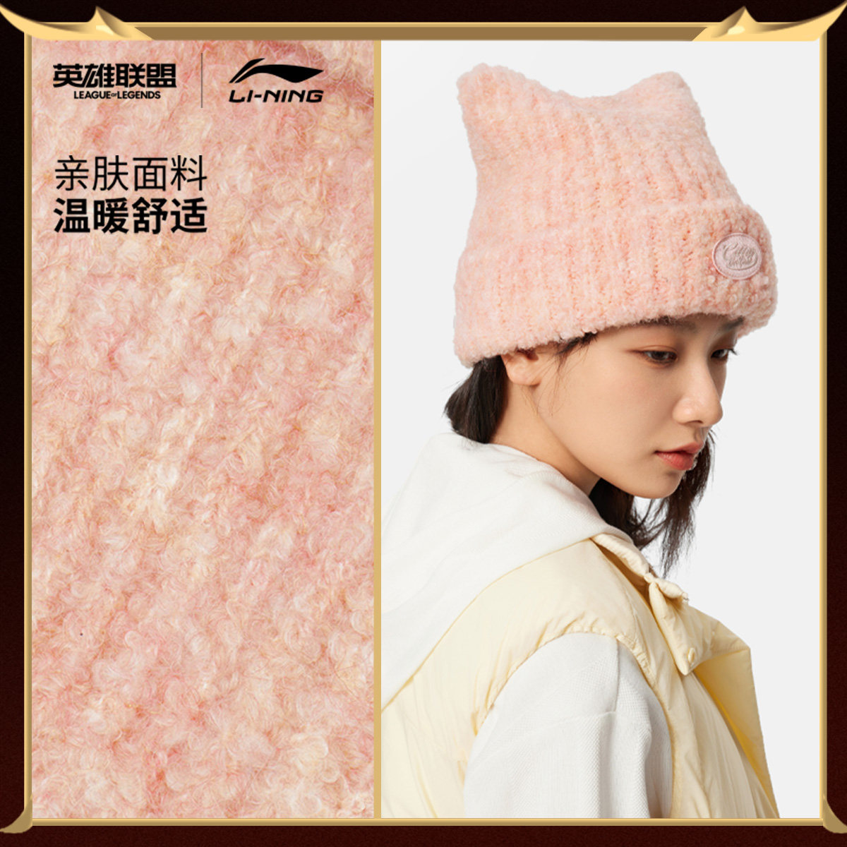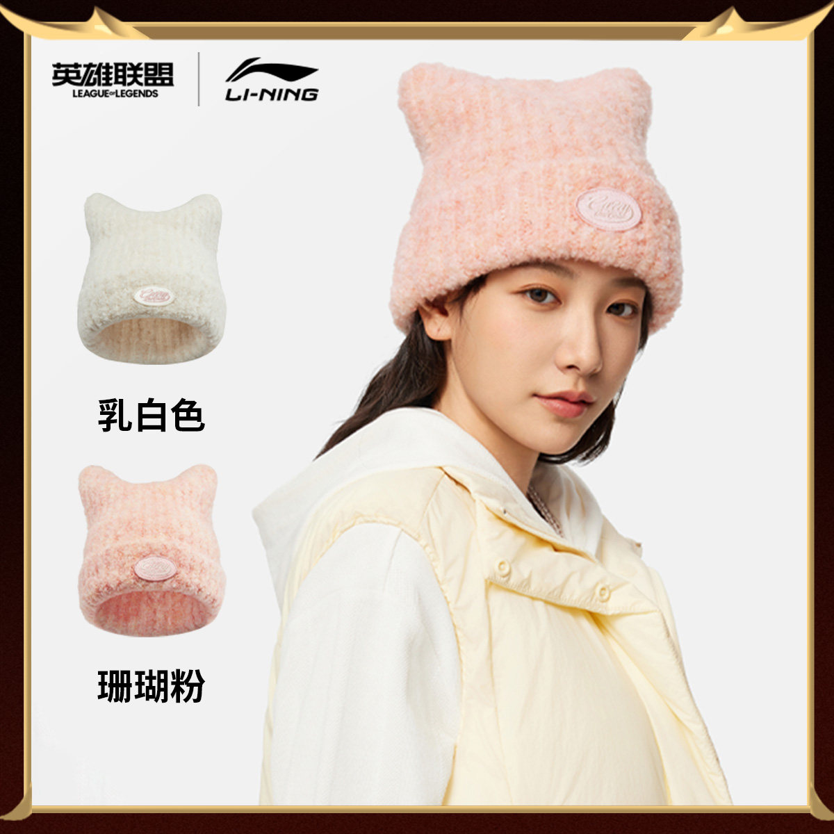 李宁猫耳帽女款针织帽2026冬季新款保暖百搭情侣运动毛线帽子男款