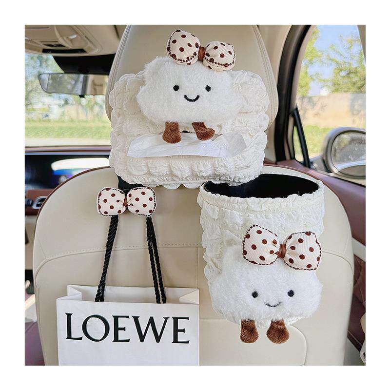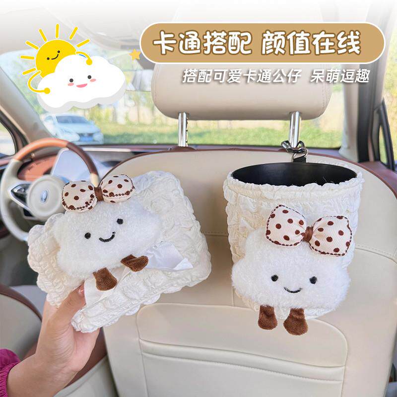 车载纸巾盒2025新款可爱云朵多功能车内垃圾桶抽纸袋挂钩装饰套装
