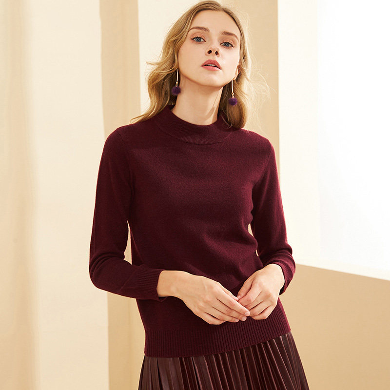 恒源祥羊绒衫女半高领秋冬季纯羊绒针织衫打底衫百搭短款套头毛衣